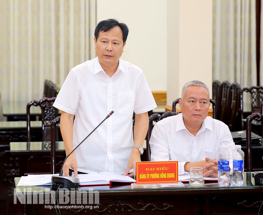 Phường Hồng Quang đề nghị xây dựng, nâng cấp cải tạo các công trình phòng, chống thiên tai như cống Đồng Lựu, đê bối Xí nghiệp Gạch, Đại An, An Tuỳ; cho phép phường rà soát, đề xuất điều chỉnh quy hoạch phân khu 2 bên đường Lê Đức Thọ; lập quy hoạch phân khu, quy hoạch sử dụng đất 2 bên đường trục phía Nam đoạn qua địa bàn phường…