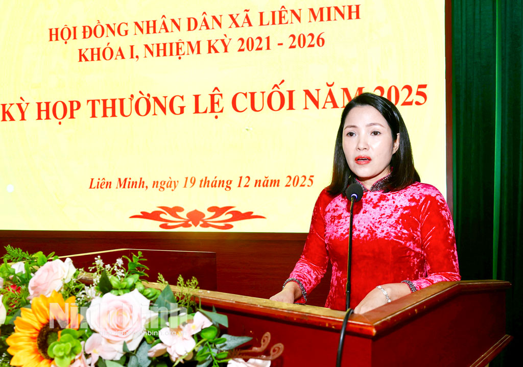 Kỳ họp cũng nghe các báo cáo của Thường trực HĐND xã về kết quả công tác năm 2025, chương trình hoạt động năm 2026; Ủy ban MTTQ Việt Nam xã thông báo hoạt động tham gia xây dựng chính quyền năm 2025 và phương hướng, nhiệm vụ năm 2026; Tổ đại biểu HĐND tỉnh thông tin kết quả kỳ họp HĐND tỉnh và kết quả trả lời của các sở, ngành của tỉnh đối với kiến nghị của cử tri xã Liên Minh. Kỳ họp đã thảo luận, xem xét và biểu quyết thông qua 8 nghị quyết thuộc thẩm quyền.