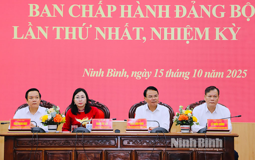 Tập trung quán triệt, triển khai thực hiện Nghị quyết Đại hội đại biểu Đảng bộ tỉnh Ninh Bình lần thứ I, nhiệm kỳ 2025-2030; ban hành Quy chế làm việc của Tỉnh ủy, Quy chế làm việc của Ủy ban Kiểm tra Tỉnh ủy, nhiệm kỳ 2025-2030; Chương trình công tác toàn khóa, Chương trình kiểm tra, giám sát của Ban Chấp hành Đảng bộ tỉnh, Ban Thường vụ Tỉnh ủy; ban hành các quy chế, quy định của Ban Thường vụ Tỉnh ủy, Ban Chấp hành Đảng bộ tỉnh; xây dựng, ban hành các nghị quyết chuyên đề, chương trình, đề án trọng tâm của Tỉnh ủy, Ban Thường vụ Tỉnh ủy để triển khai thực hiện Nghị quyết Đại hội.