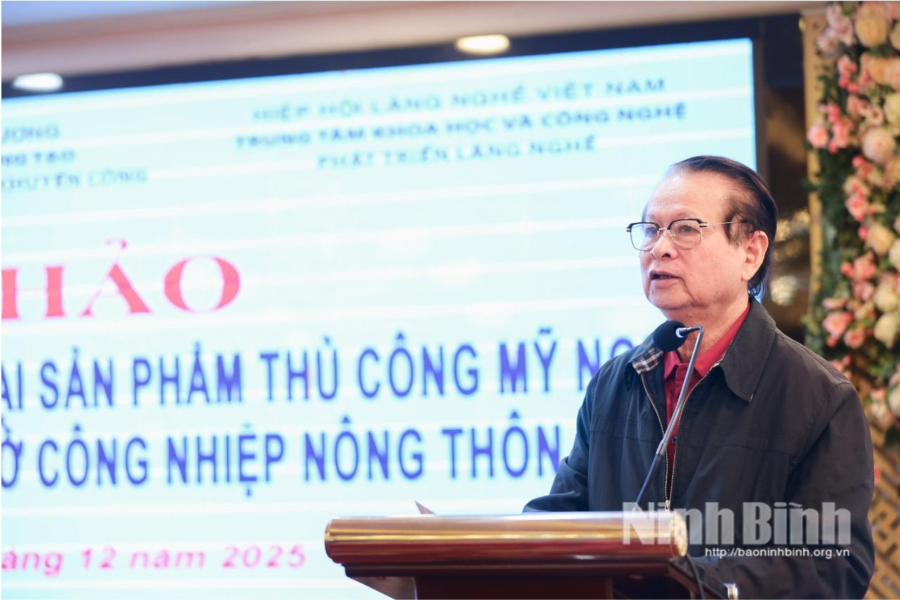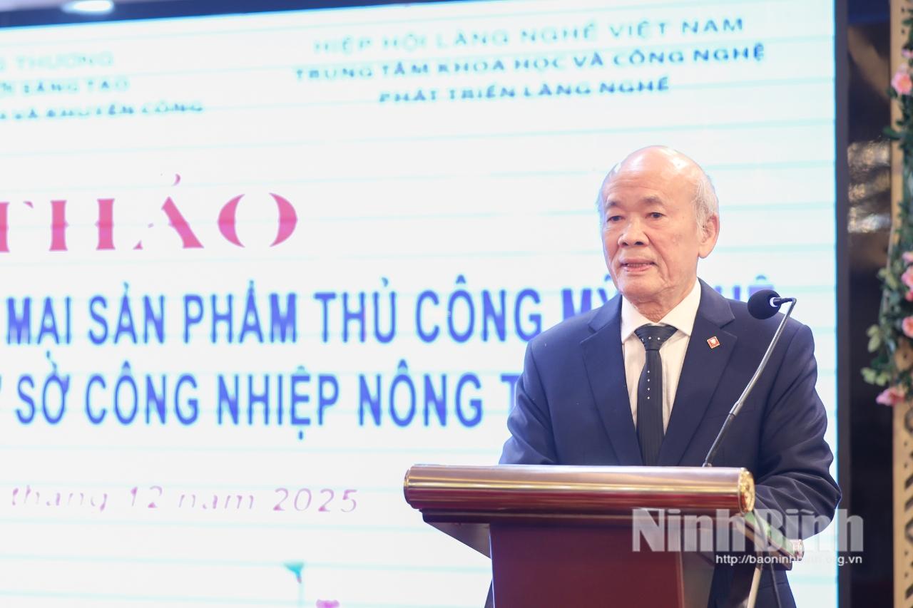 Phát biểu khai mạc hội thảo, ông Trịnh Quốc Đạt, Chủ tịch Hiệp hội Làng nghề Việt Nam, nhấn mạnh: ngành thủ công mỹ nghệ đang đứng trước thời cơ lớn khi nhu cầu tiêu dùng sản phẩm thân thiện môi trường, sản phẩm văn hóa - sáng tạo ngày càng gia tăng. Việc tổ chức hội thảo có ý nghĩa thiết thực, giúp các doanh nghiệp, cơ sở sản xuất tiếp cận thông tin, cải thiện chất lượng sản phẩm và nâng cao hiệu quả xúc tiến thương mại, đặc biệt trong giai đoạn chuyển đổi xanh và chuyển đổi số.