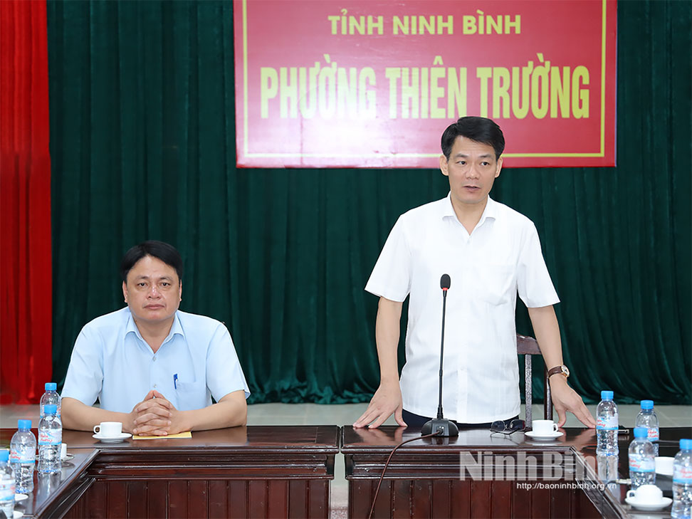 giáo và Dân vận Tỉnh ủy, Phó Trưởng Tiểu ban Tuyên truyền phát biểu tại buổi làm việc với phường Thiên Trường.