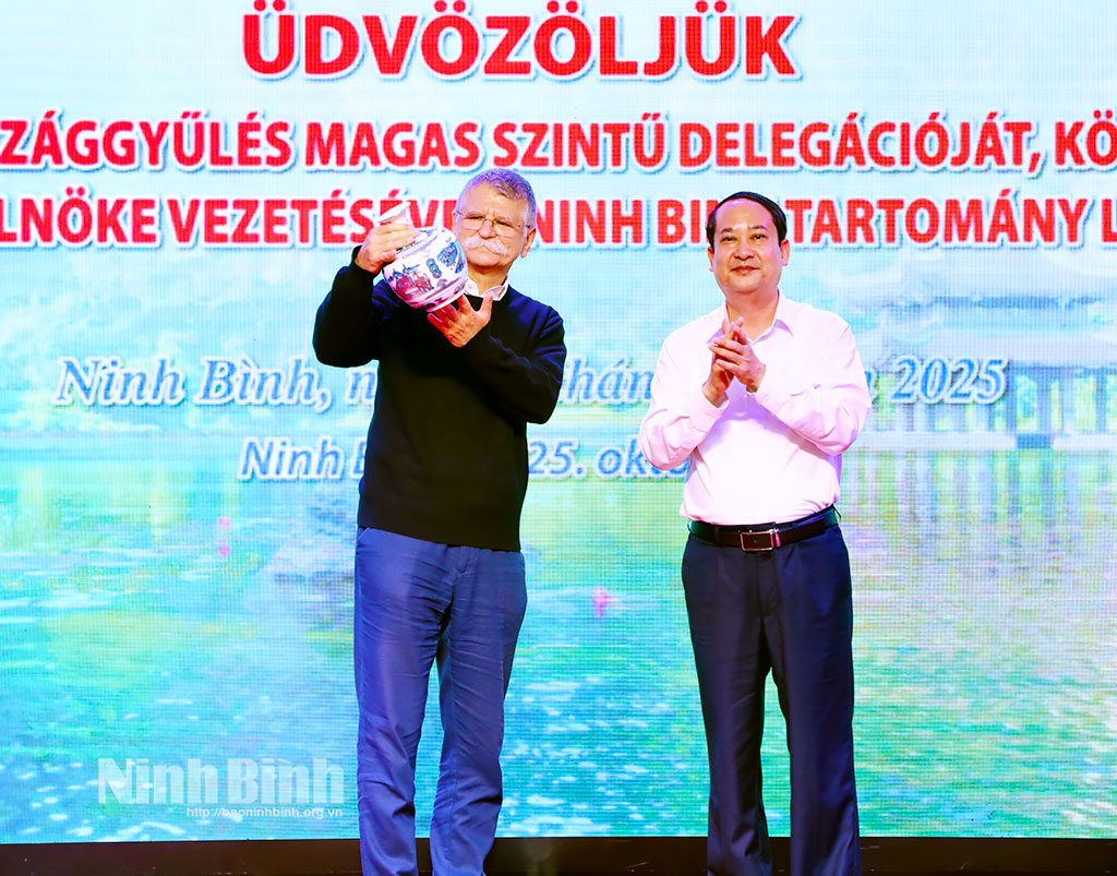 Nhân dịp này, Tỉnh ủy, HĐND, UBND, Ủy ban MTTQ Việt Nam tỉnh Ninh Bình đã tổ chức tiệc chiêu đãi ngài Kover Laszlo, Chủ tịch Quốc hội Hungary và Đoàn đại biểu Quốc hội Hungary. Đồng chí Mai Văn Tuất, Phó Bí thư Tỉnh ủy, Chủ tịch Ủy ban MTTQ Việt Nam tỉnh và ngài Kover Laszlo, Chủ tịch Quốc hội Hungary đã trao tặng nhau những món quà là các sản phẩm văn hóa đặc trưng của mỗi Quốc gia, địa phương.