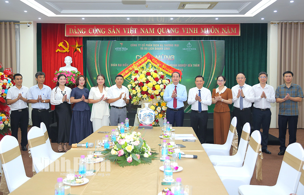 Đoàn cũng đã đến thăm và chúc mừng Công ty Cổ phần Dịch vụ Thương mại và Du lịch Doanh Sinh, đơn vị đầu tư, khai thác Khu du lịch sinh thái Thung Nham.