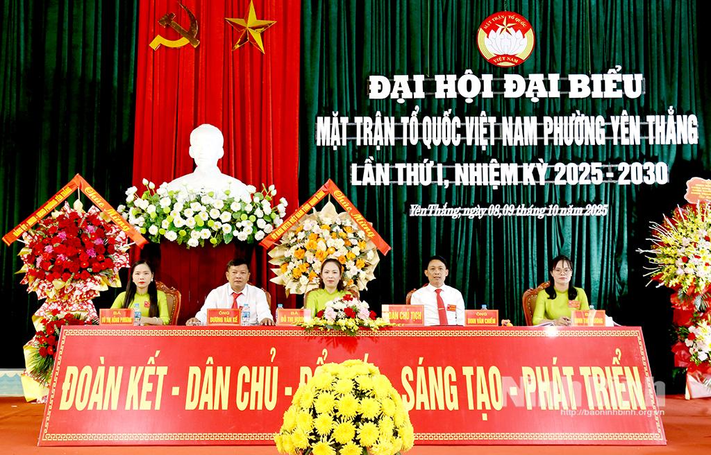 Ngày 9/10, Ủy ban MTTQ Việt Nam một số phường, xã trong tỉnh đã tổ chức thành công Đại hội đại biểu lần thứ I, nhiệm kỳ 2025-2030. Tại các Đại hội đã hiệp thương cử Ủy ban MTTQ Việt Nam phường, xã khóa I, nhiệm kỳ 2025-2030; cử Đoàn đại biểu dự Đại hội đại biểu MTTQ Việt Nam tỉnh Ninh Bình nhiệm kỳ 2025-2030.
