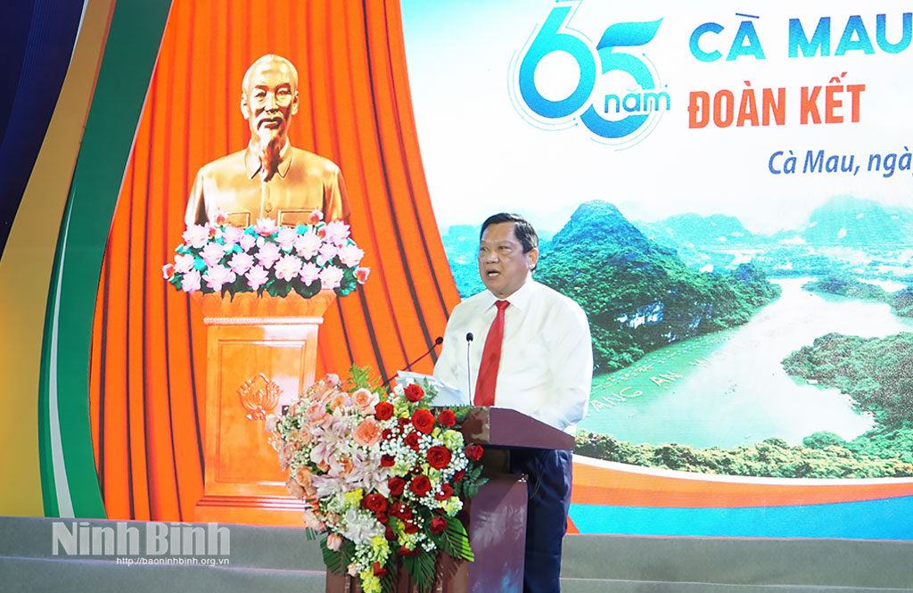Diễn văn chào mừng kỷ niệm 65 năm kết nghĩa tỉnh Cà Mau và tỉnh Ninh Bình, đồng chí Lâm Văn Bi, Ủy viên Ban Thường vụ Tỉnh ủy, Phó Chủ tịch Thường trực UBND tỉnh Cà Mau nhấn mạnh: Lễ kỷ niệm 65 năm kết nghĩa giữa 2 tỉnh Cà Mau - Ninh Bình là dịp để ôn lại những truyền thống quý báu, tri ân sự đóng góp của các thế hệ đi trước và tiếp tục khẳng định quyết tâm vun đắp mối quan hệ thủy chung, son sắt giữa 2 địa phương.