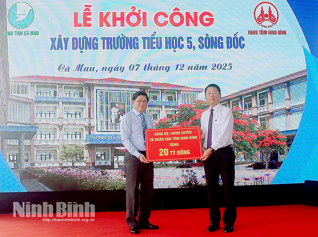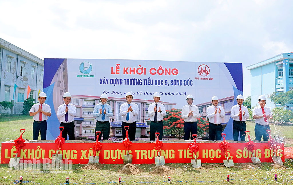 * Chiều cùng ngày, (7/12), UBND tỉnh Cà Mau phối hợp UBND tỉnh Ninh Bình tổ chức lễ khởi công đầu tư, xây dựng và nâng cấp Trường Tiểu học 5 Sông Đốc tại xã Sông Đốc. Dự lễ khởi công có đồng chí Huỳnh Quốc Việt, Ủy viên Dự khuyết Ban Chấp hành Trung ương Đảng, Phó Bí thư Thường trực Tỉnh ủy Cà Mau; đồng chí Lê Văn Sử, Phó Chủ tịch UBND tỉnh Cà Mau, đồng chí Trần Song Tùng, Ủy viên Ban Thường vụ Tỉnh ủy, Phó Chủ tịch Thường trực UBND tỉnh Ninh Bình.