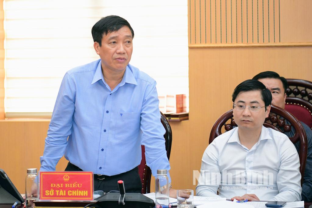 Đồng chí Mai Văn Quyết, Ủy viên Ban Thường vụ Tỉnh ủy, Giám đốc Sở Tài chính phát biểu tại hội nghị.