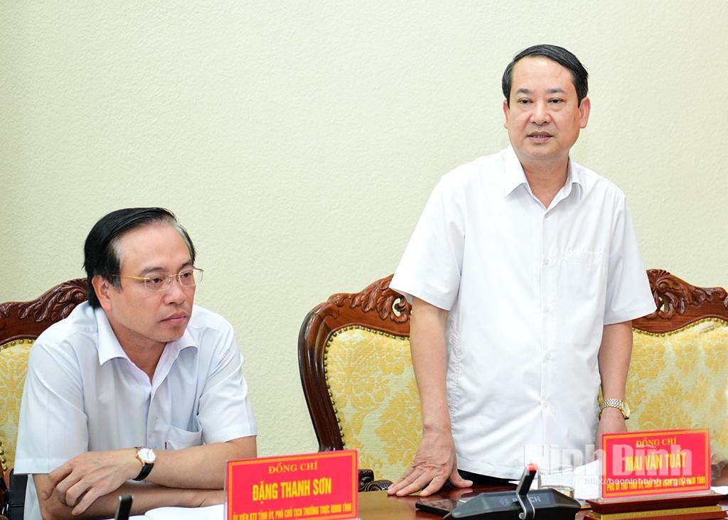 Dự hội nghị có các đồng chí: Đinh Thị Lụa, Phó Bí thư Thường trực Tỉnh ủy; Lê Quốc Chỉnh, Phó Bí thư Tỉnh ủy, Chủ tịch HĐND tỉnh; Phạm Quang Ngọc, Phó Bí thư Tỉnh uỷ, Chủ tịch UBND tỉnh; Mai Văn Tuất, Phó Bí thư Tỉnh uỷ, Chủ tịch Ủy ban MTTQ Việt Nam tỉnh; các đồng chí Ủy viên Ban Thường vụ Tỉnh ủy và lãnh đạo một số sở, ban ngành có liên quan.