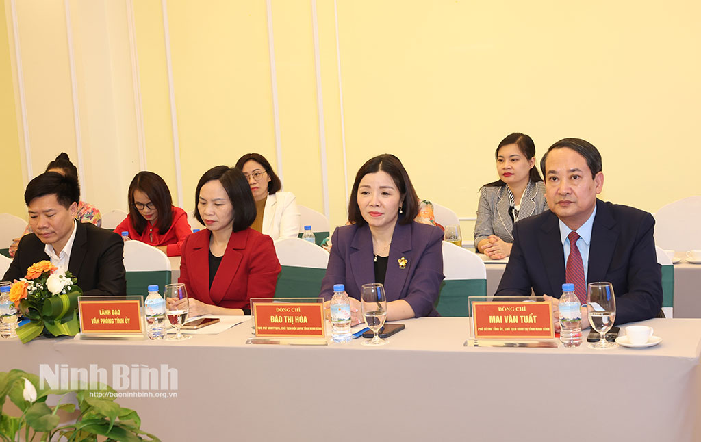 Phát biểu chào mừng tại hội nghị, đồng chí Mai Văn Tuất, Phó Bí thư Tỉnh uỷ, Chủ tịch Uỷ ban Mặt trận Tổ quốc Việt Nam tỉnh trân trọng cảm ơn sự quan tâm, chỉ đạo của lãnh đạo Trung ương Hội LHPN Việt Nam; các ban, các đơn vị của Trung ương Hội LHPN Việt Nam luôn quan tâm, phối hợp chỉ đạo và tạo điều kiện giúp đỡ Hội LHPN tỉnh Ninh Bình trong tổ chức thực hiện các nhiệm vụ, các chương trình công tác; sự quan tâm phối hợp hoạt động của Hội LHPN các tỉnh trong Cụm thi đua đối với Hội LHPN tỉnh Ninh Bình.