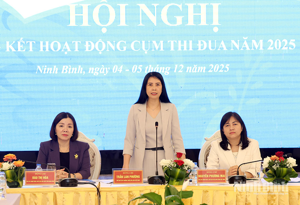 Chiều 4/12, tại tỉnh Ninh Bình, Cụm thi đua Hội Liên hiệp Phụ nữ (LHPN) Việt Nam các tỉnh trung du và đồng bằng sông Hồng tổ chức hội nghị tổng kết hoạt động cụm thi đua năm 2025. Đồng chí Trần Lan Phương, Phó Chủ tịch Thường trực Trung ương Hội LHPN Việt Nam dự và chỉ đạo hội nghị.