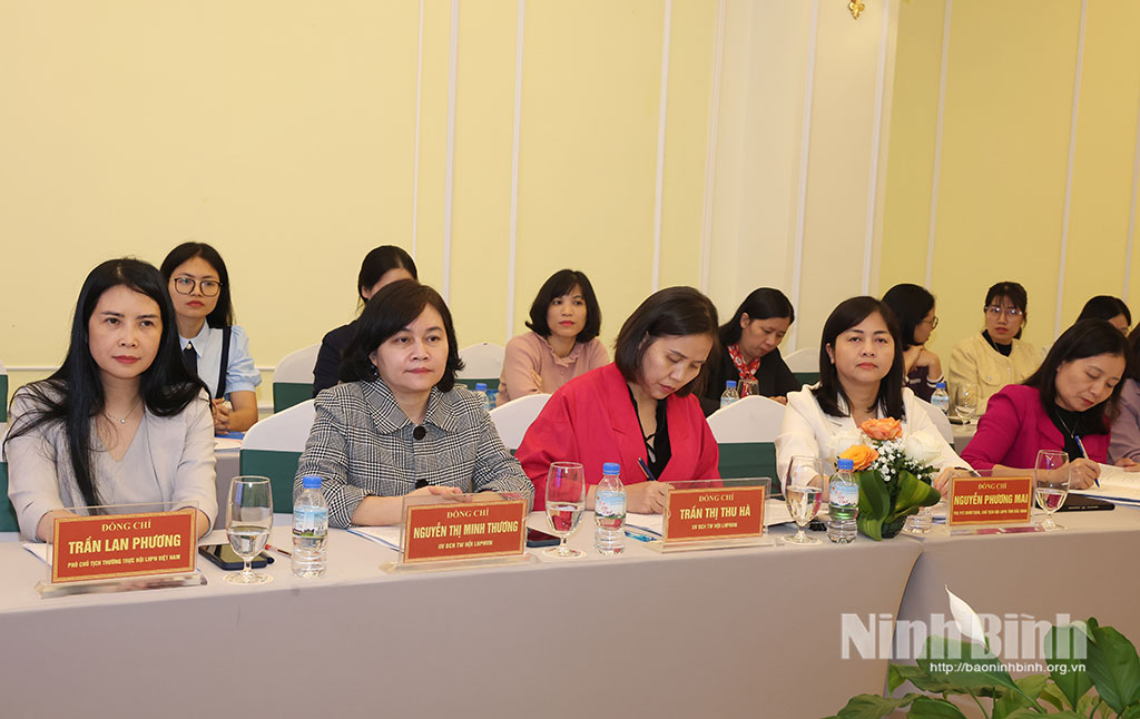 Tham dự hội nghị còn có các đồng chí trong đoàn công tác phụ trách cụm thi đua; các đồng chí Tỉnh uỷ viên là Phó Chủ tịch Uỷ ban Mặt trận Tổ quốc Việt Nam tỉnh, Chủ tịch Hội LHPN một số tỉnh trung du và đồng bằng sông Hồng; đại diện Văn phòng Tỉnh uỷ, Văn phòng UBND tỉnh Ninh Bình; đại diện Ban Công tác Phụ nữ Hội LHPN các tỉnh trong Cụm thi đua.