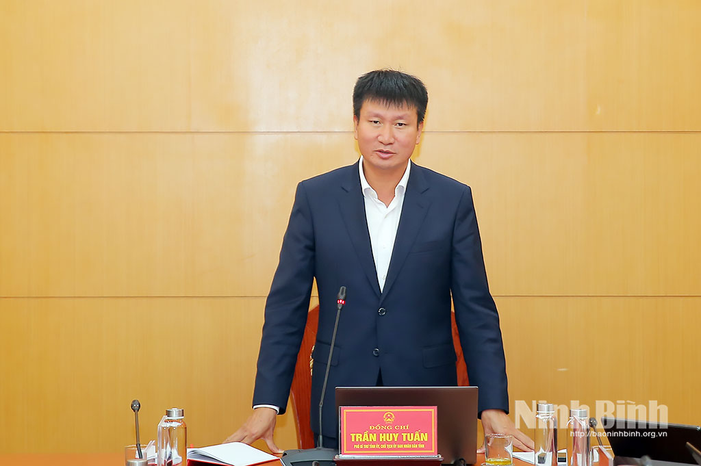 Đồng chí Trần Huy Tuấn, Phó Bí thư Tỉnh ủy, Chủ tịch UBND tỉnh phát biểu kết luận buổi làm việc.