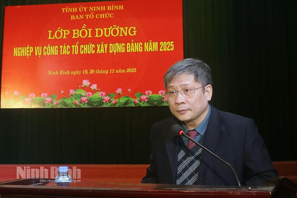 Phát biểu khai mạc lớp bồi dưỡng, đồng chí Phó Trưởng Ban Tổ chức Tỉnh ủy Phạm Minh Tuấn nêu rõ: Công tác tổ chức xây dựng Đảng là nhiệm vụ “then chốt”, có ý nghĩa quyết định đối với năng lực lãnh đạo, sức chiến đấu của tổ chức đảng và đội ngũ cán bộ, đảng viên. Trong bối cảnh tỉnh Ninh Bình đang vận hành mô hình chính quyền địa phương 2 cấp, yêu cầu đặt ra đối với công tác tổ chức xây dựng Đảng ngày càng cao, đòi hỏi đội ngũ cán bộ tham mưu phải thường xuyên được bồi dưỡng, cập nhật kiến thức và kỹ năng, đáp ứng nhiệm vụ trong giai đoạn mới.