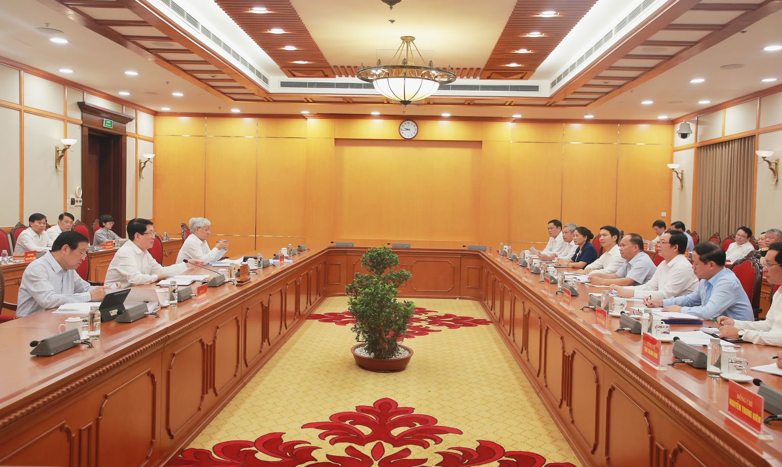 Cùng dự có các đồng chí: Phan Đình Trạc, Ủy viên Bộ Chính trị, Bí thư Trung ương Đảng, Trưởng Ban Nội chính Trung ương; Đỗ Văn Chiến, Ủy viên Bộ Chính trị, Bí thư Trung ương Đảng, Chủ tịch Ủy ban Trung ương Mặt trận Tổ quốc Việt Nam và đại diện lãnh đạo các Ban Đảng Trung ương, Văn phòng Trung ương Đảng và một số bộ, ngành Trung ương.