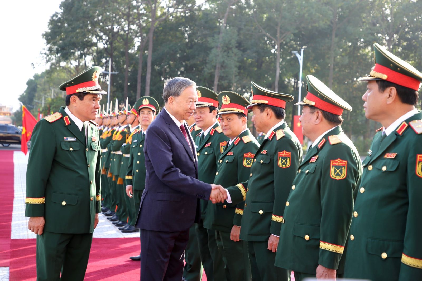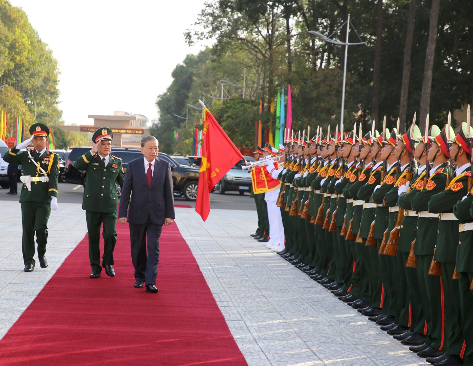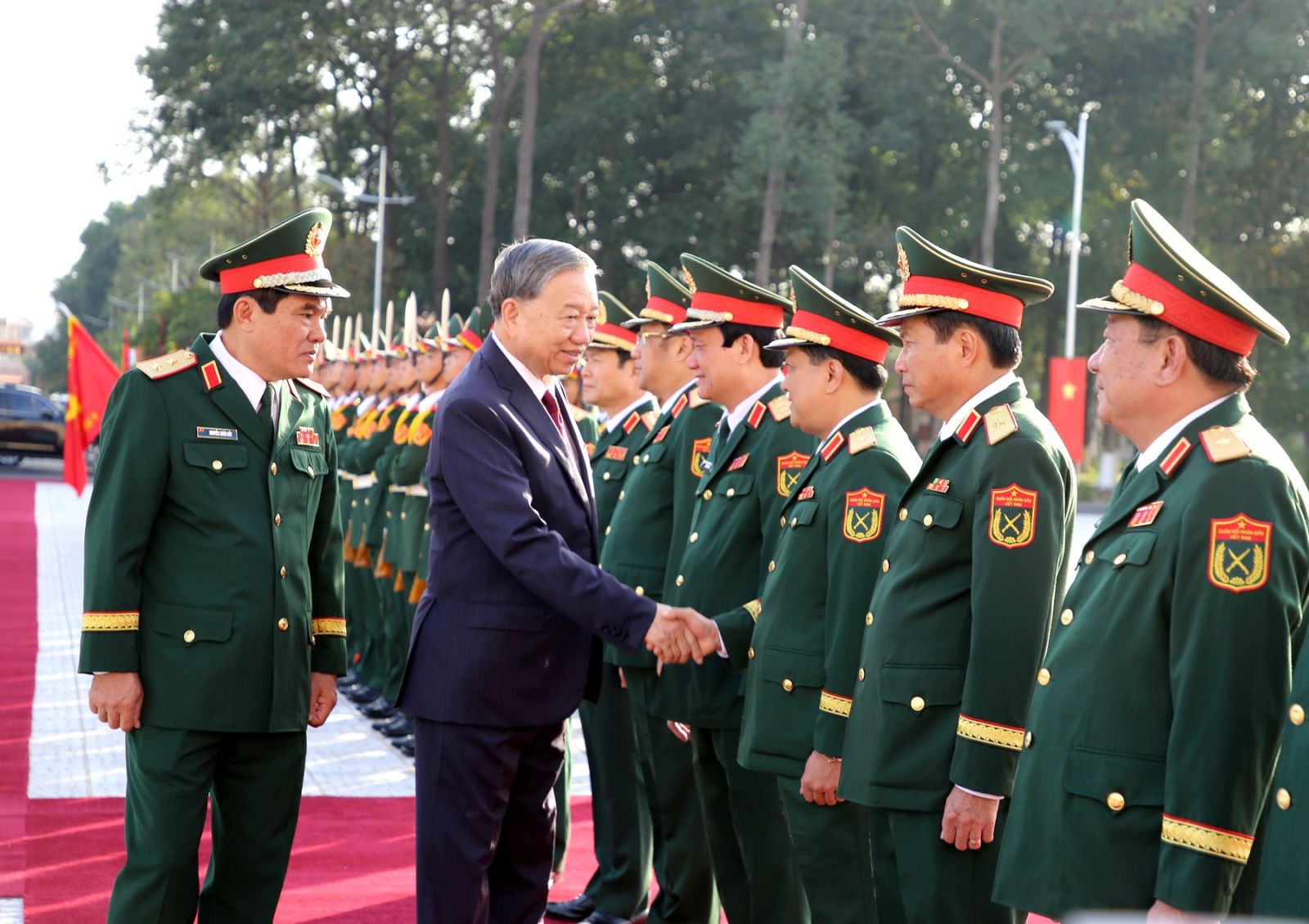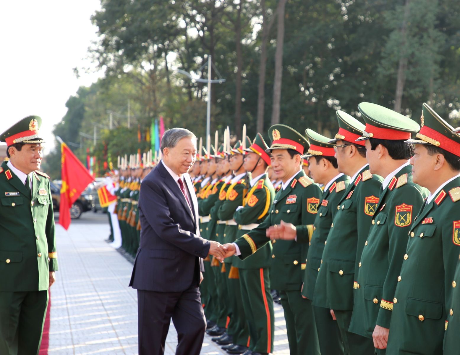 Ảnh: Tổng Bí thư Tô Lâm thăm và dự Lễ kỷ niệm 80 năm ngày truyền thống Lực lượng vũ trang Quân khu 9