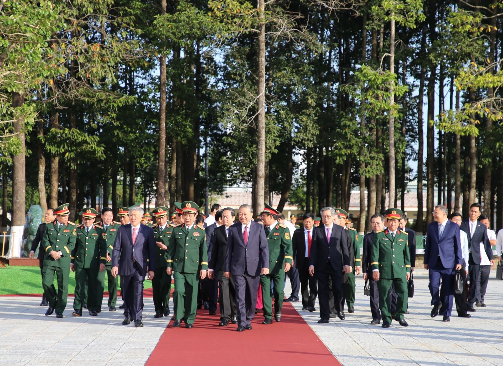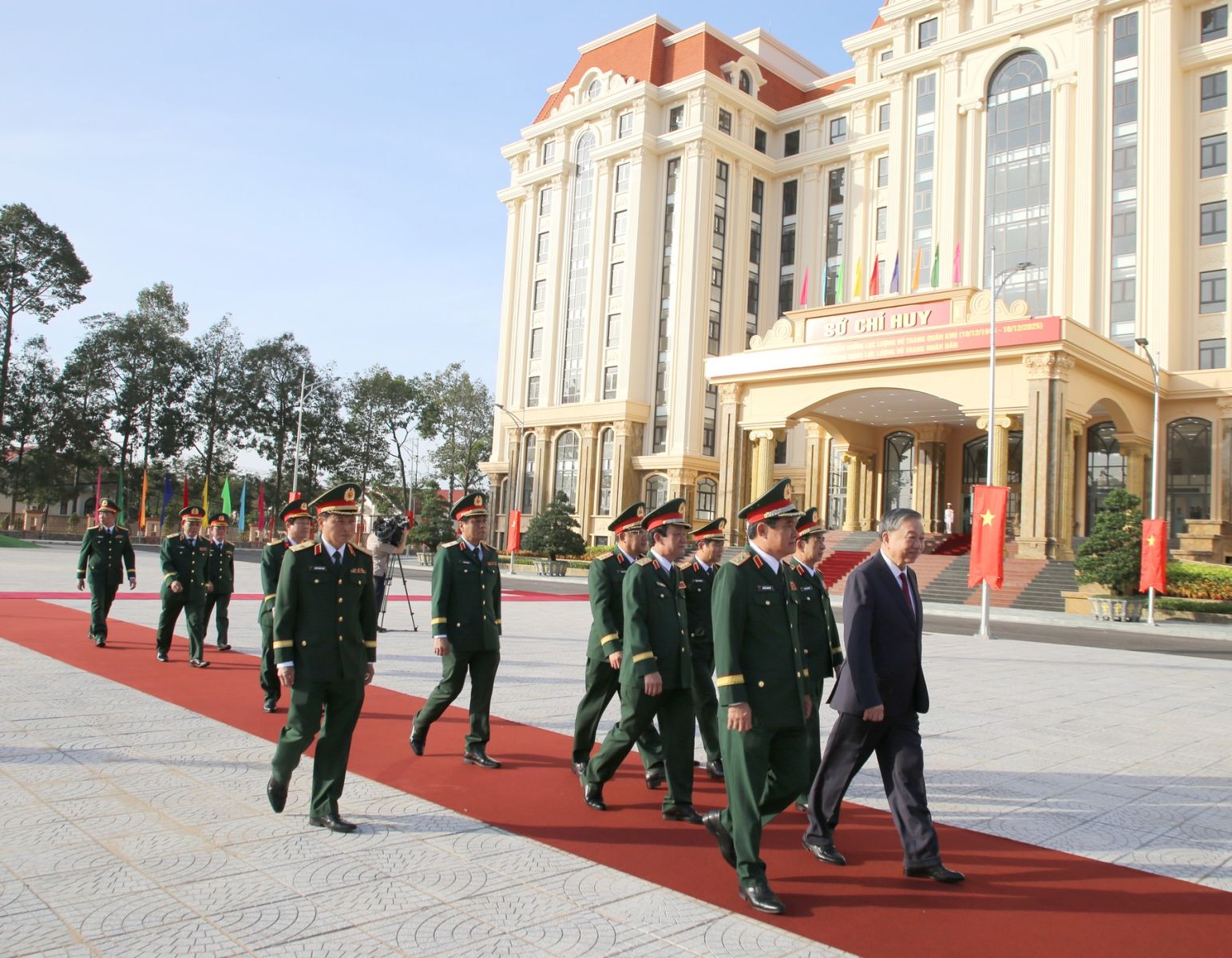 Tổng Bí thư Tô Lâm và các đại biểu trong khuôn viên Quân khu 9.