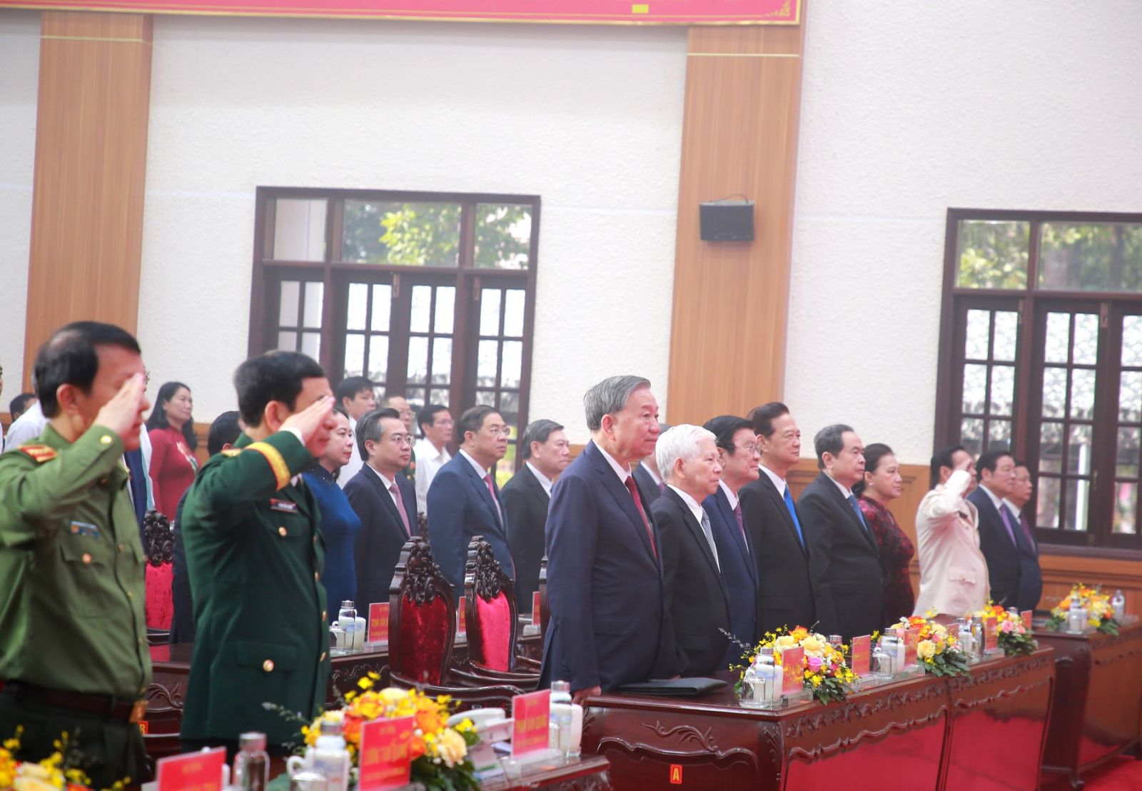 Tổng Bí thư Tô Lâm và các đại biểu thực hiện nghi lễ chào cờ.