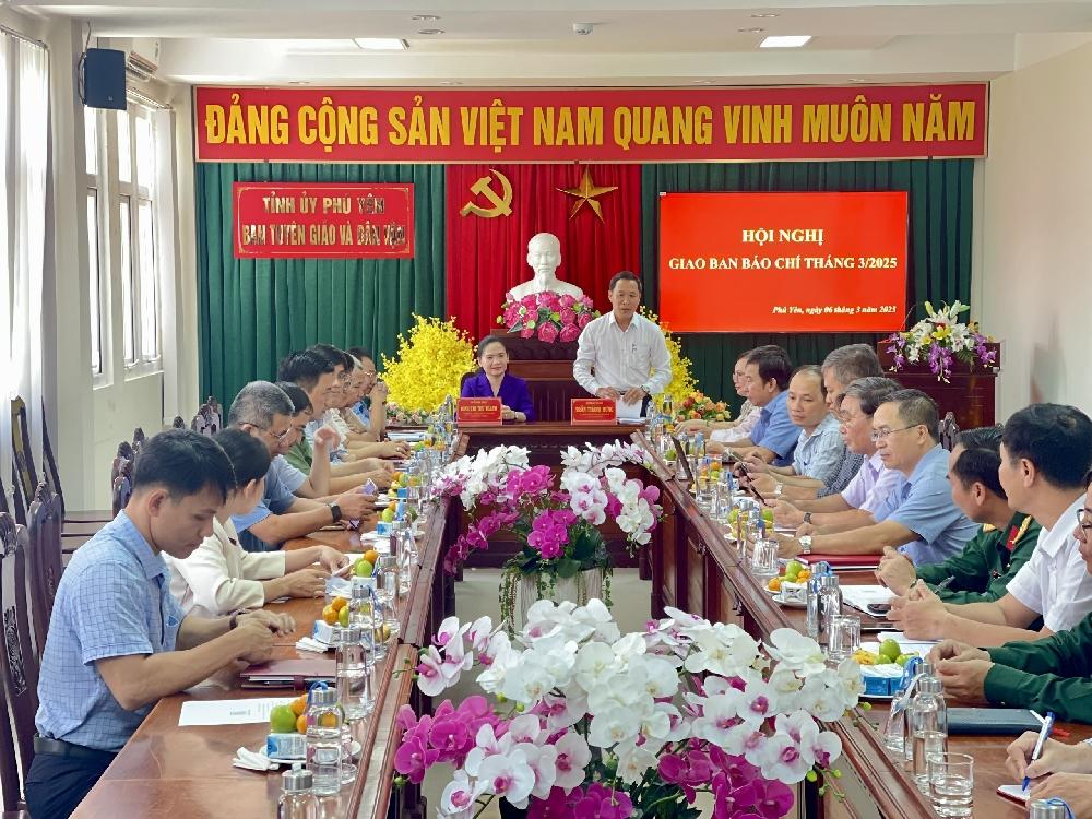 Tại hội nghị, đại diện Sở Văn hóa, Thể thao và Du lịch đã cung cấp thông tin về công tác quản lý nhà nước trên lĩnh vực báo chí trong tháng 02/2025; Hội Nhà báo tỉnh báo cáo về các hoạt động của hội viên trong thời gian qua. Sở Văn hóa, Thể thao và Du lịch cũng đã cung cấp thông tin về công tác chuẩn bị tổ chức Lễ kỷ niệm 50 năm Ngày Giải phóng Phú Yên (01/4/1975 - 01/4/2025). Đồng thời, hội nghị cũng ghi nhận những kiến nghị của đại diện các cơ quan báo chí liên quan đến điều kiện tác nghiệp, chính sách hỗ trợ báo chí tham gia tuyên truyền các sự kiện quan trọng của tỉnh. Lãnh đạo Ban Tuyên giáo và Dân vận Tỉnh ủy cùng các đơn vị liên quan đã tiếp thu, giải đáp các vấn đề mà báo chí quan tâm.
