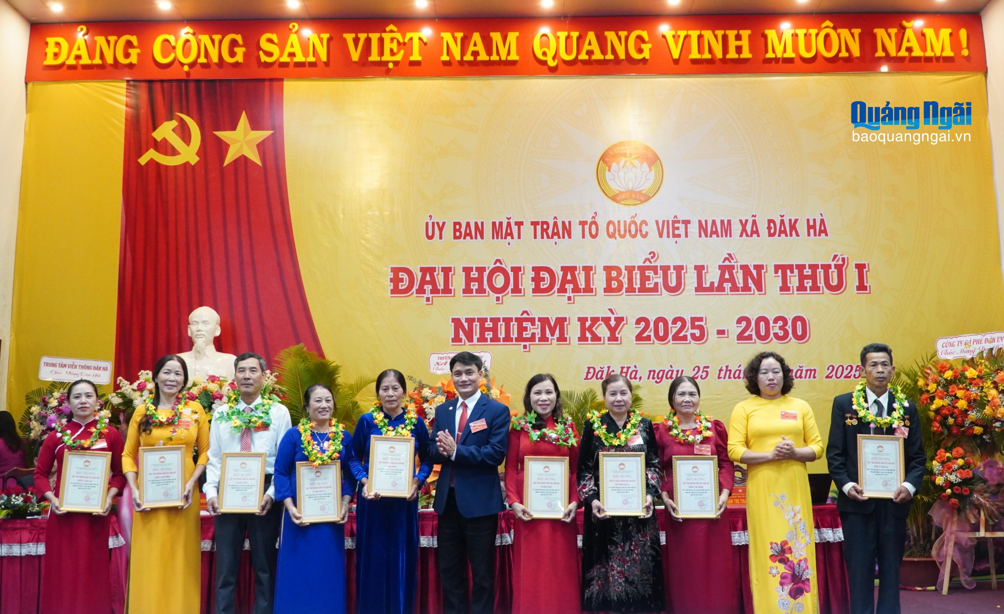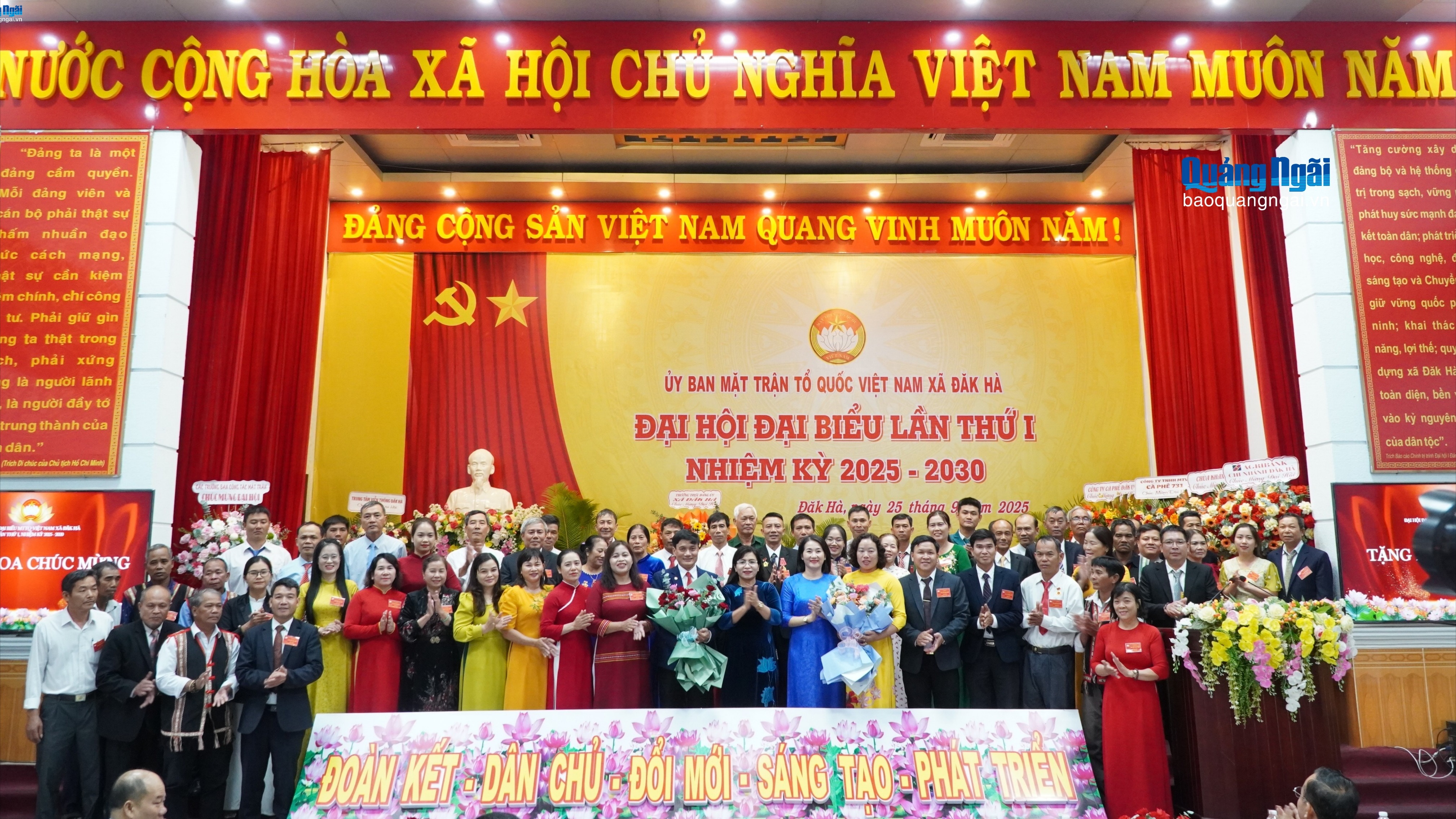 (Baoquangngai.vn)- Với chủ đề “Đoàn kết, dân chủ, đổi mới, sáng tạo, phát triển”, Đại hội đại biểu MTTQ Việt Nam xã Đăk Hà lần thứ I kêu gọi toàn thể cán bộ, đảng viên, các tầng lớp nhân dân cùng chung sức, quyết tâm xây dựng xã phát triển nhanh, toàn diện, bền vững.
