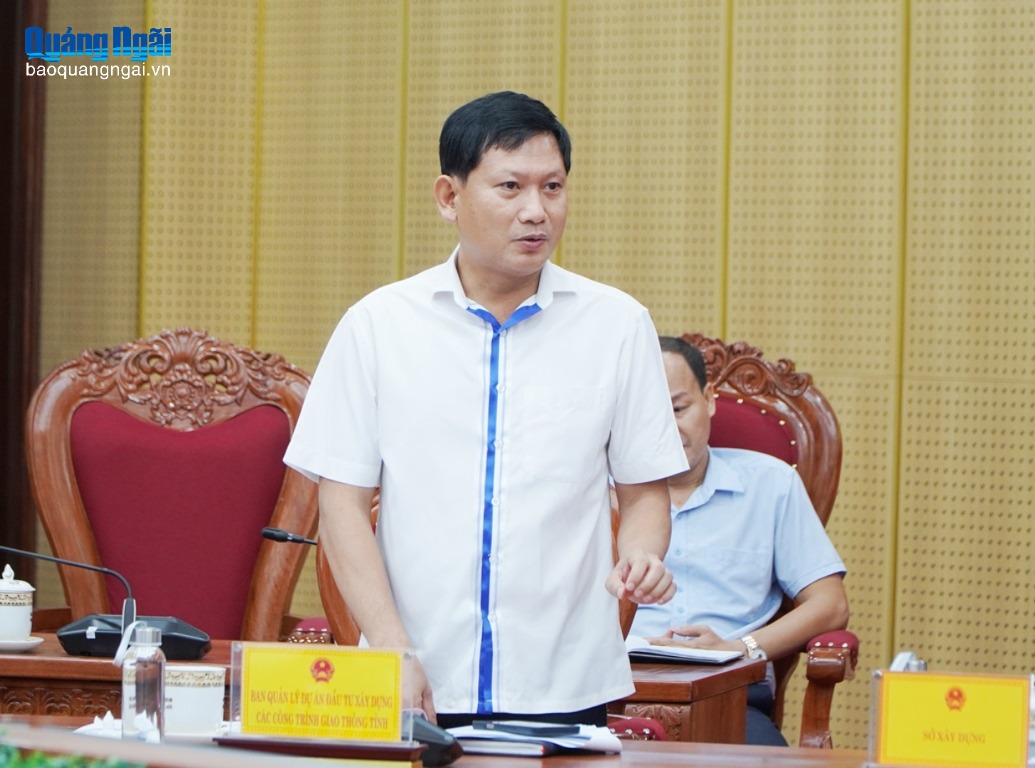 Đại diện lãnh đạo Ban Quản lý dự án Đầu tư xây dựng các công trình giao thông tỉnh báo cáo tình hình thực hiện 6 dự án quan trọng tại buổi làm việc.