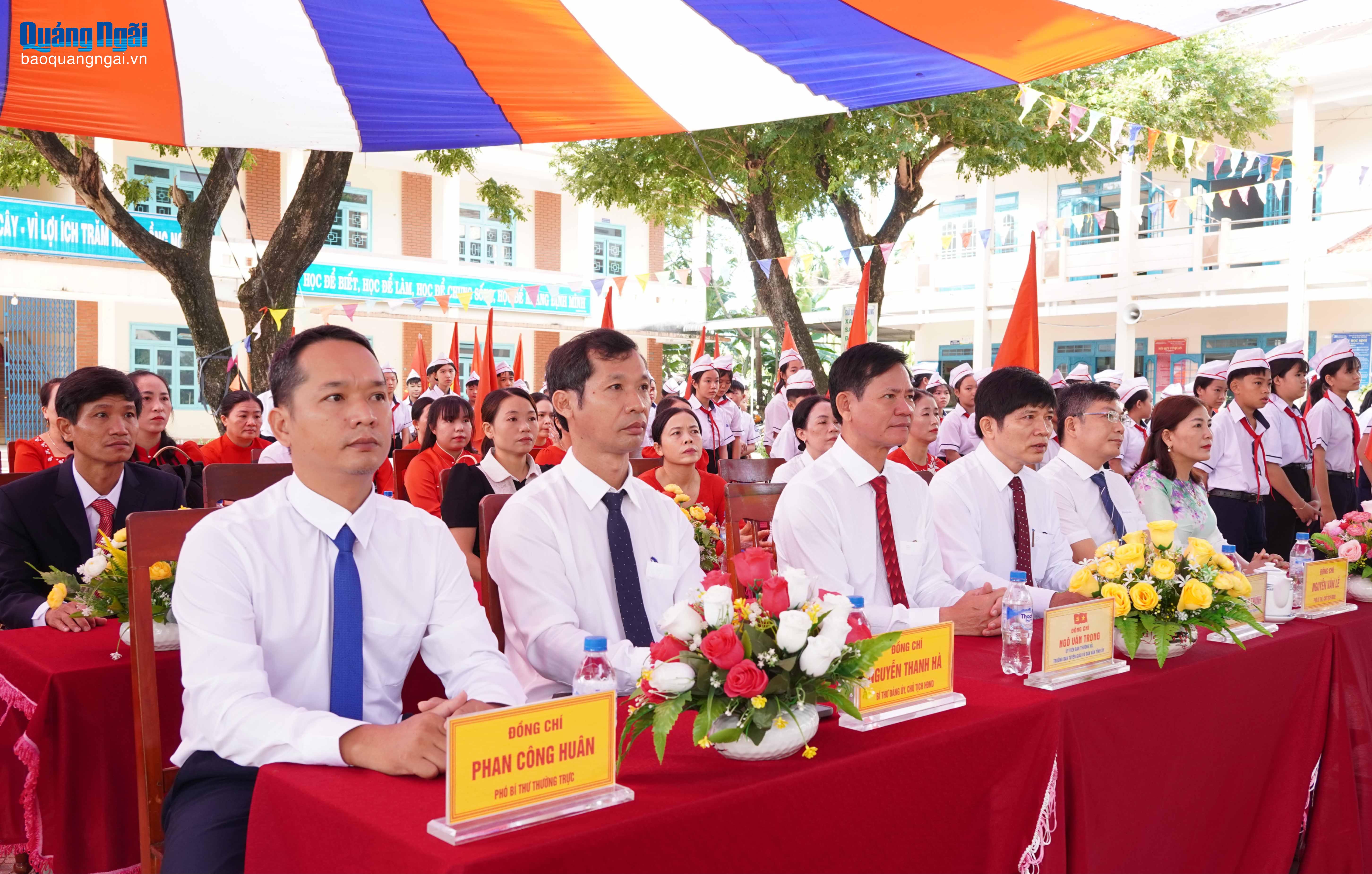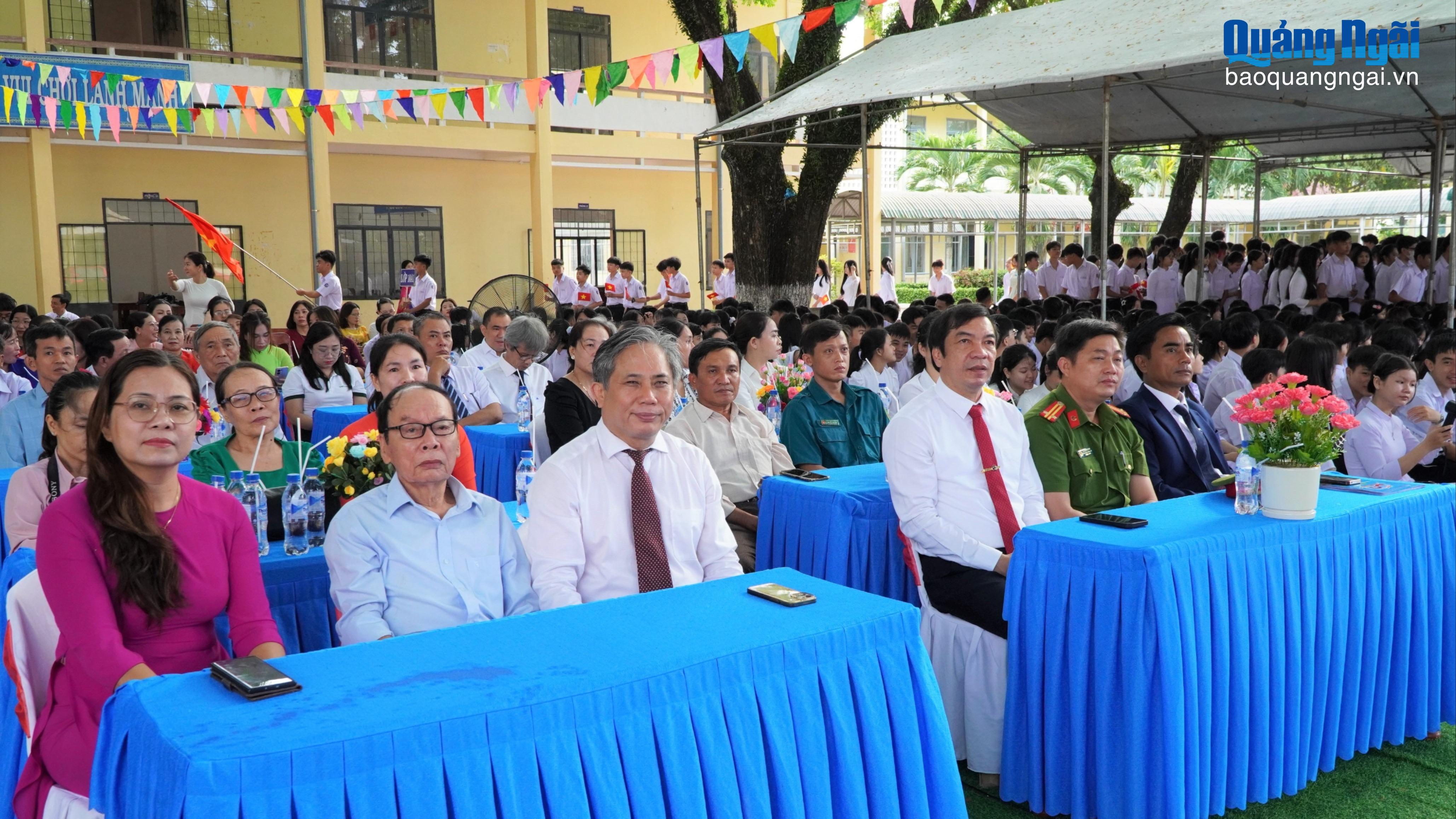Ủy viên Ban Thường vụ Tỉnh ủy, Trưởng ban Tổ chức Tỉnh ủy Lữ Ngọc Bình, cùng các đại biểu tham dự Lễ khai giảng tại Trường THPT số 1 Nghĩa Hành.