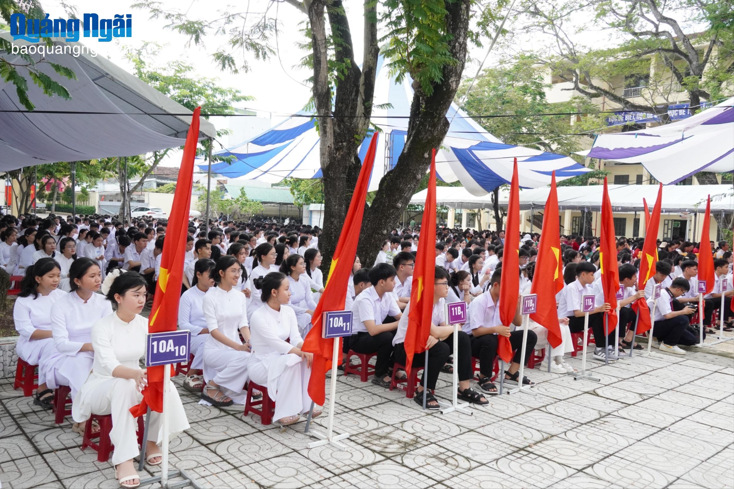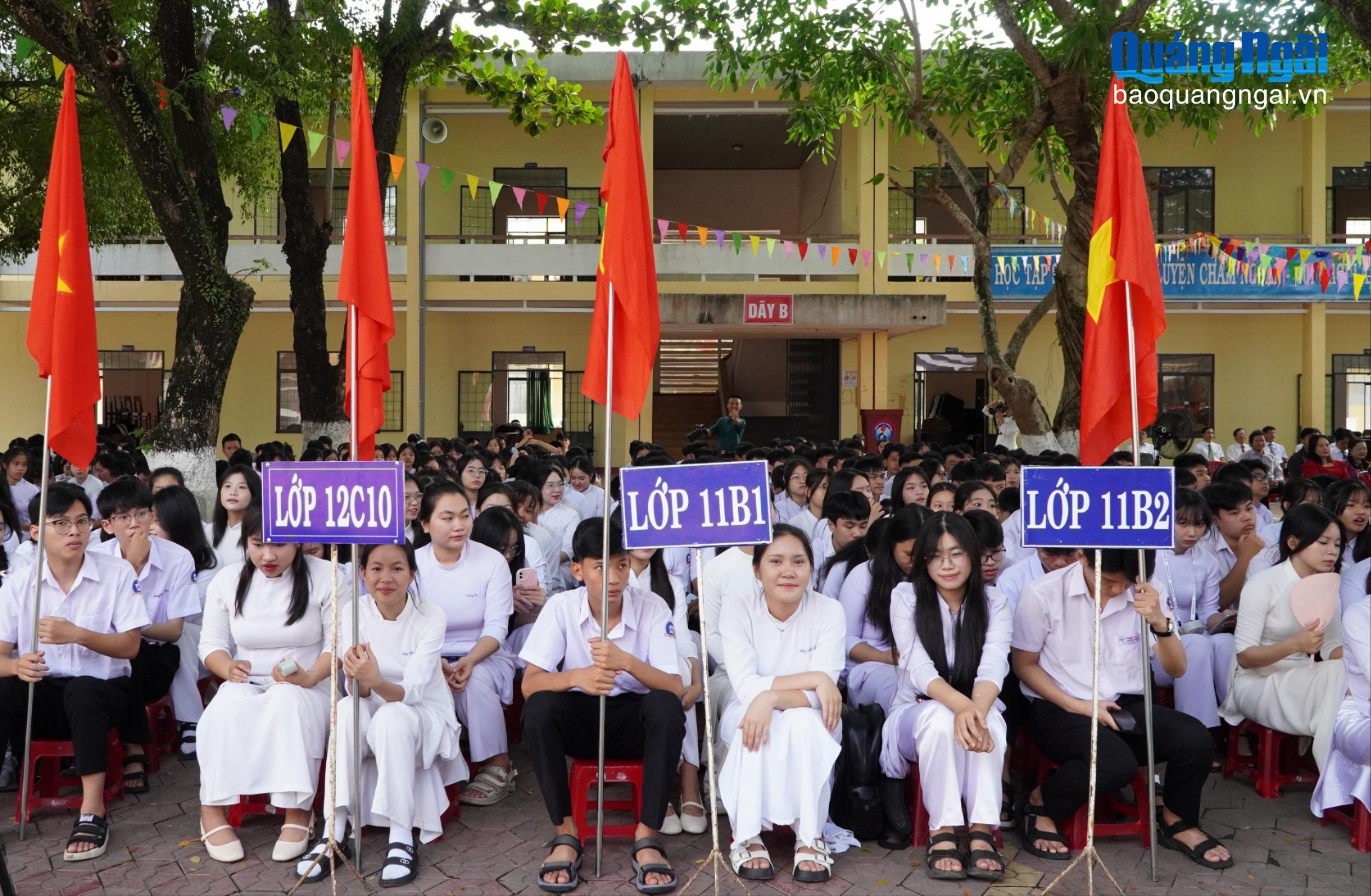 Phát biểu tại lễ khai giảng, Phó Hiệu trưởng Trường THPT Chuyên Lê Khiết Lê Văn Trung khẳng định, năm học 2025 - 2026, phát huy những thành tích đạt được, thầy và trò nhà trường quyết tâm thực hiện có hiệu quả chủ đề năm học là “Kỷ cương - sáng tạo - đột phá - phát triển”. Đồng thời nhắn nhủ học sinh toàn trường cần quyết tâm cao nhất trong học tập, luôn chủ động, sáng tạo và nêu cao tinh thần tự học để phát huy trí tuệ, nắm vững kiến thức.