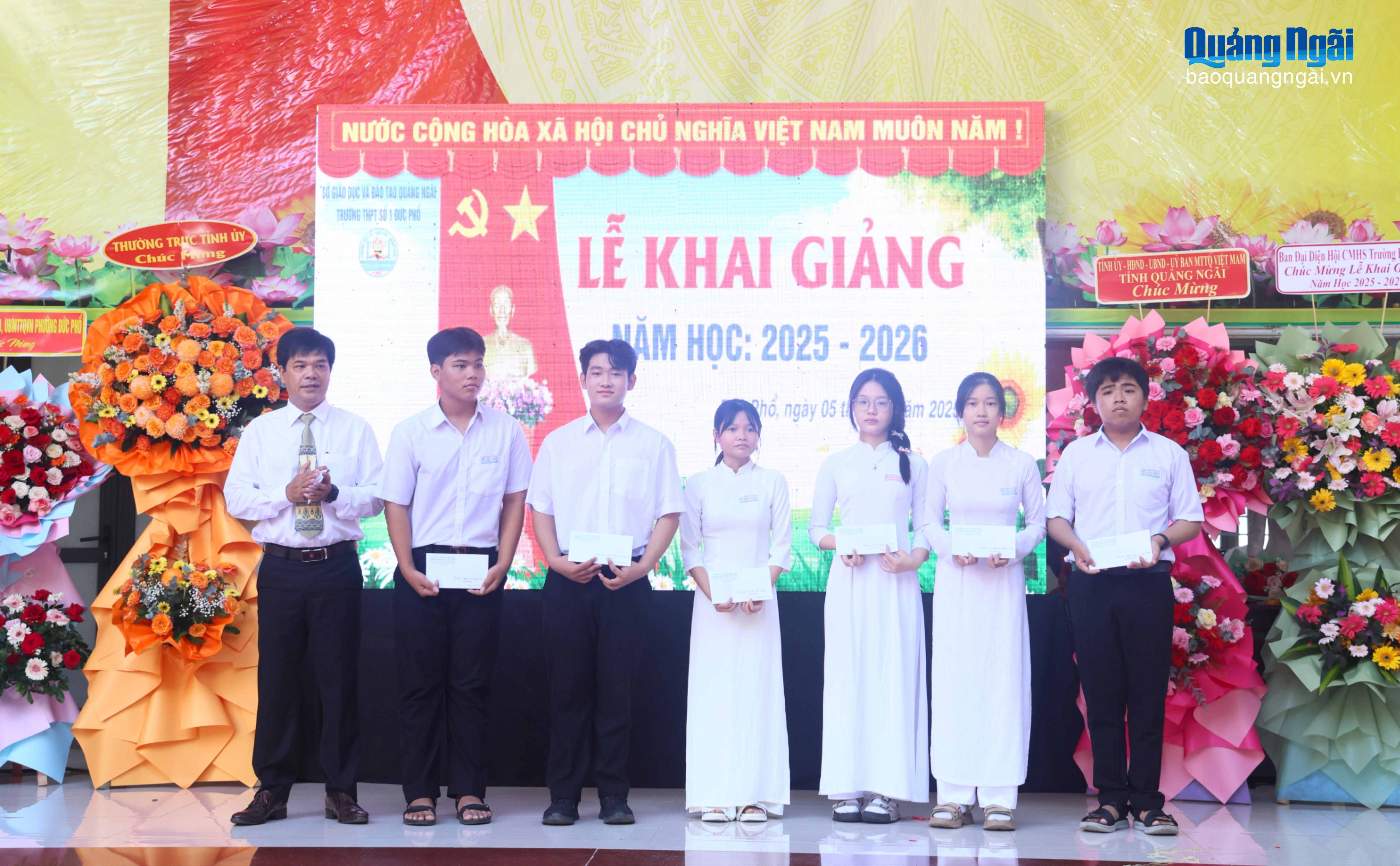 Nhân dịp này, lãnh đạo nhà trường cùng các đơn vị tài trợ đã trao nhiều suất học bổng cho học sinh có thành tích học tập xuất sắc trong năm học 2024 - 2025; học sinh có hoàn cảnh khó khăn, vượt khó vươn lên trong học tập. Những suất học bổng này không chỉ là sự động viên về vật chất mà còn là nguồn khích lệ tinh thần để các em phấn đấu đạt nhiều thành tích hơn nữa trong năm học 2025 - 2026.