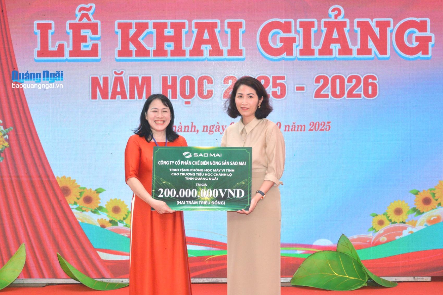 Công ty CP Chế biến nông sản Sao Mai tặng 20 bộ máy tính, trị giá 200 triệu đồng cho Trường Tiểu học Chánh Lộ.