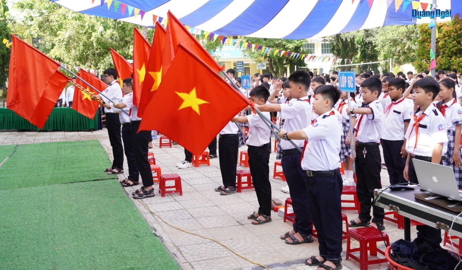 Trong không khí trang trọng của lễ khai giảng năm học mới, lãnh đạo nhà trường khẳng định quyết tâm thực hiện thắng lợi nhiệm vụ năm học mới, tiếp tục nâng cao chất lượng dạy và học, nhất là đẩy mạnh chuyển đổi số trong GD&ĐT; đồng thời chăm lo phát triển toàn diện cho học sinh.