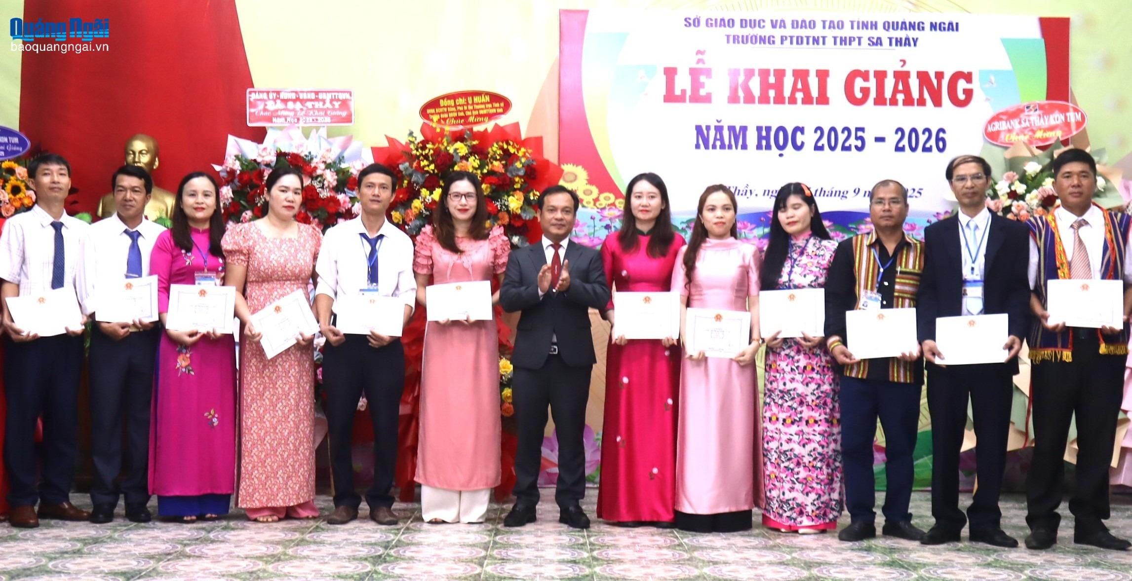 Tại lễ khai giảng, nhà trường tổ chức khen thưởng các tập thể, cá nhân, cán bộ, giáo viên, nhân viên và trao học bổng cho học sinh có thành tích cao trong năm học 2024 - 2025.