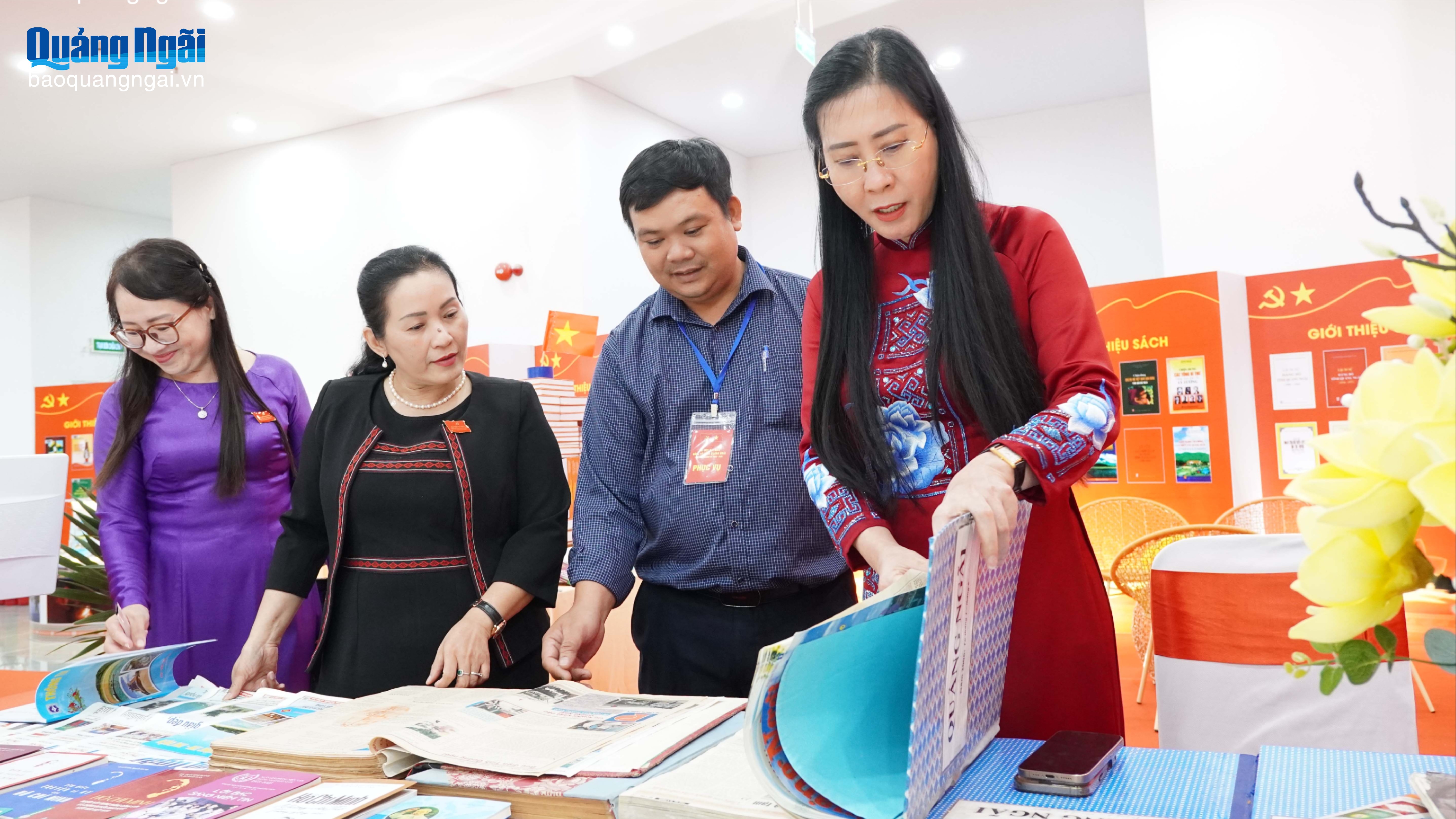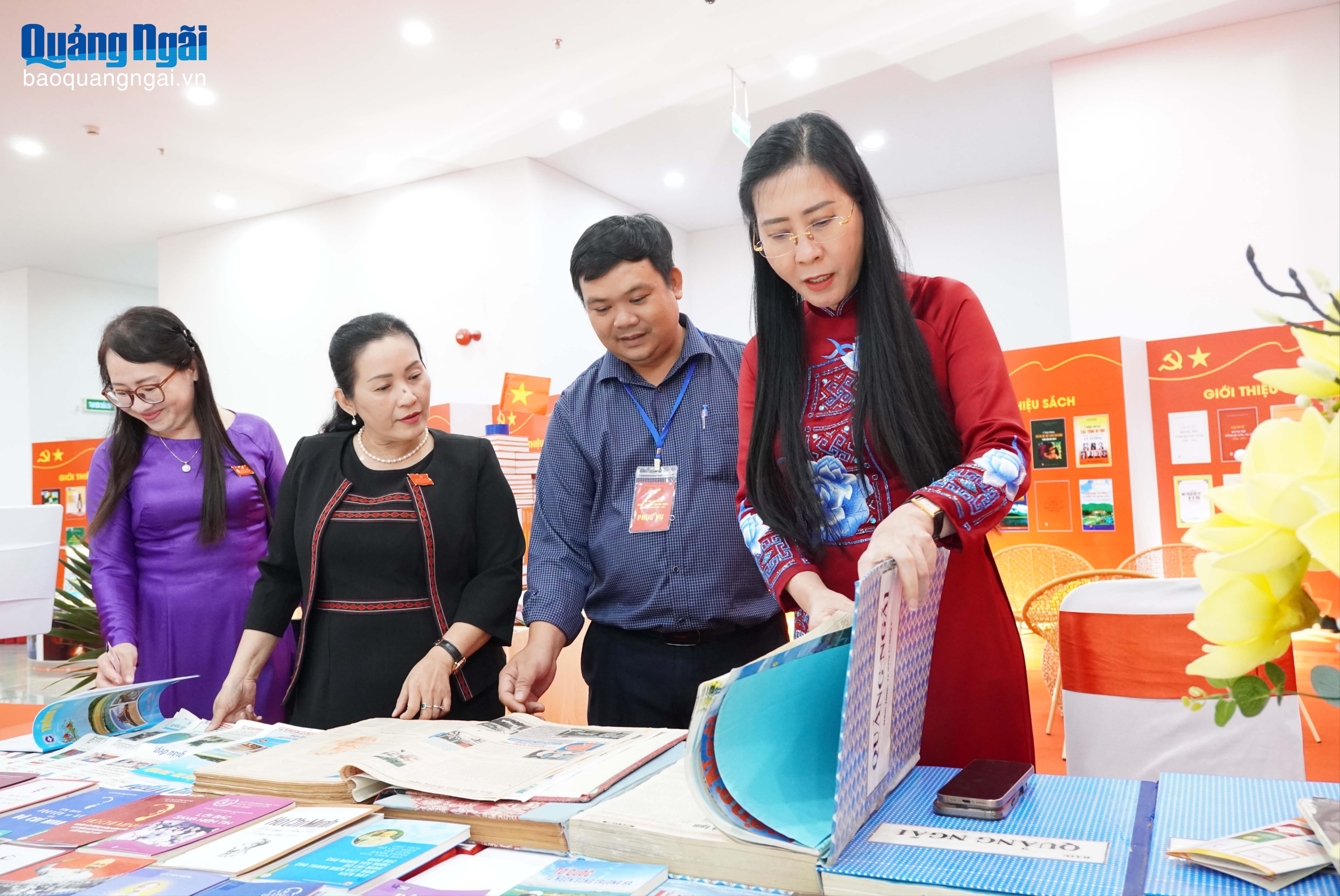 Khu vực trưng bày sách, báo, tài liệu giới thiệu nguồn tư liệu về các văn kiện Đại hội Đảng toàn quốc, văn kiện Đại hội đại biểu Đảng bộ tỉnh Quảng Ngãi và tỉnh Kon Tum (cũ) cùng nhiều sách, báo, tài liệu quý khác.