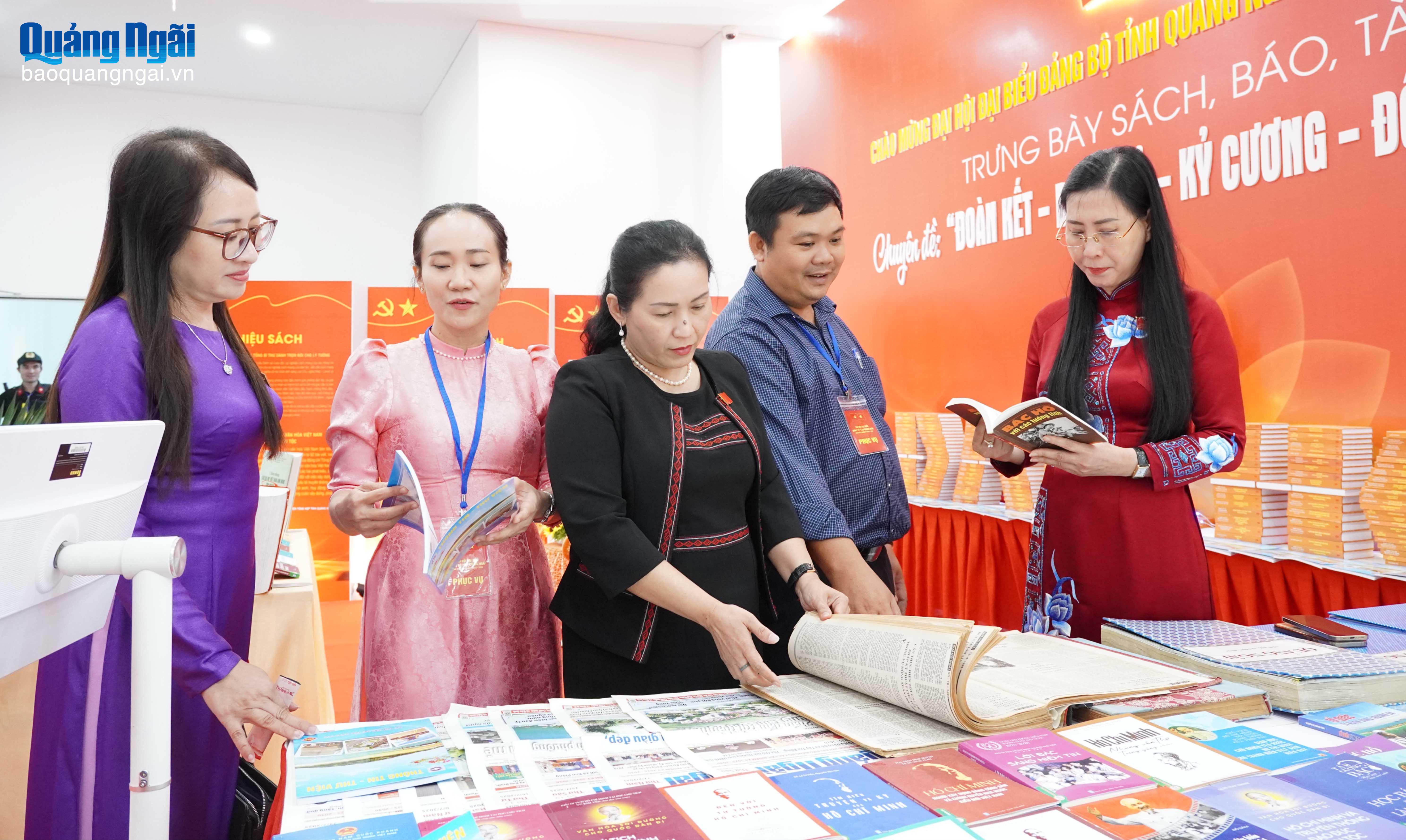 Khu vực trưng bày giới thiệu đến đại biểu tham dự đại hội nguồn sách, báo, tài liệu của tỉnh Quảng Ngãi và tỉnh Kon Tum (cũ) qua các thời kỳ do Thư viện lưu trữ. Trong đó, nổi bật là các văn kiện Đại hội Đảng toàn quốc, văn kiện Đại hội Đảng bộ tỉnh Quảng Ngãi và Kon Tum (cũ).