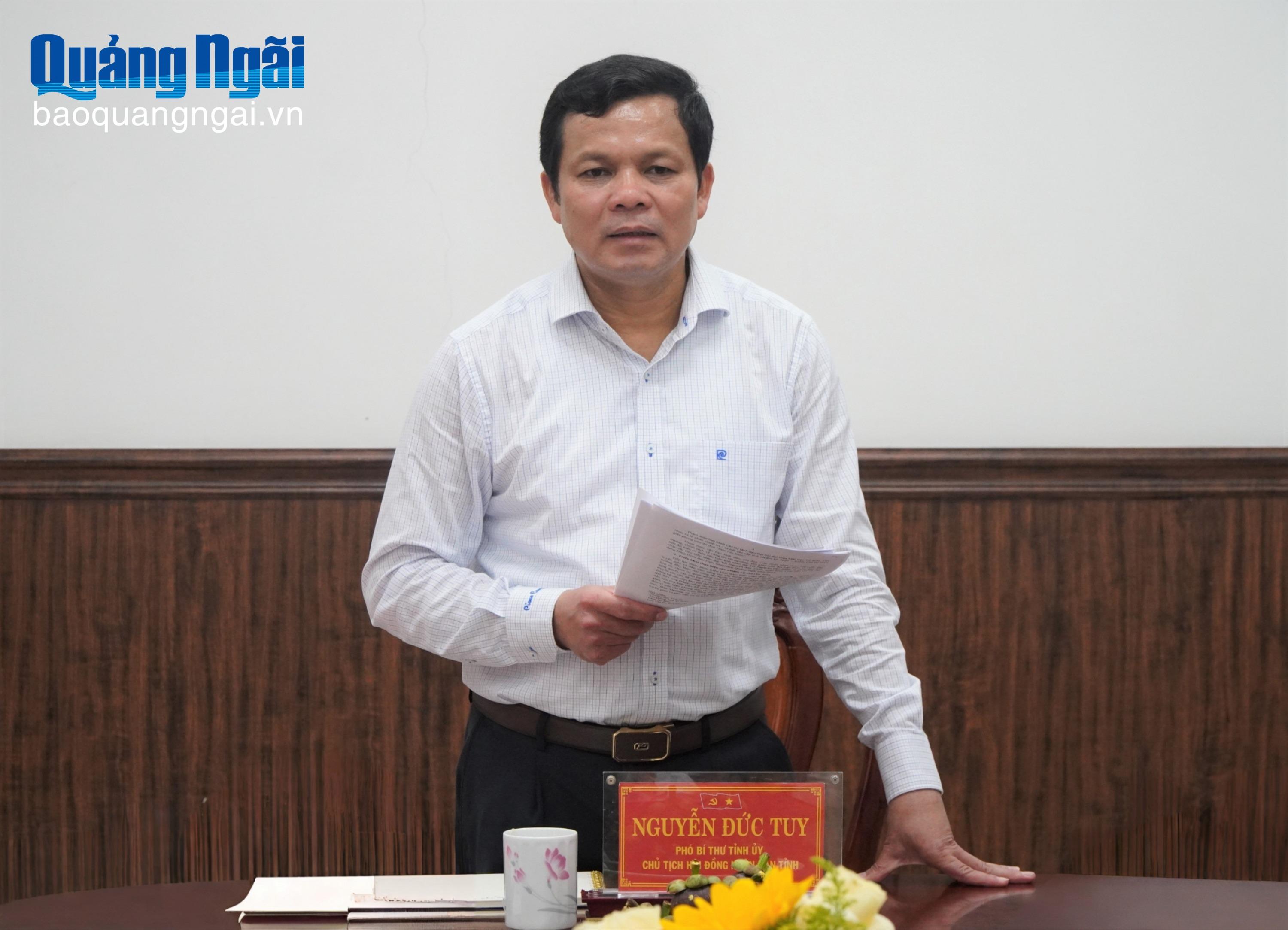 Phát biểu tại buổi làm việc, Phó Bí thư Tỉnh ủy, Chủ tịch HĐND tỉnh Nguyễn Đức Tuy ghi nhận và biểu dương tinh thần đoàn kết, trách nhiệm của đội ngũ cán bộ, công chức, người lao động Ban Tuyên giáo và Dân vận Tỉnh ủy từ khi sau sáp nhập đến nay.