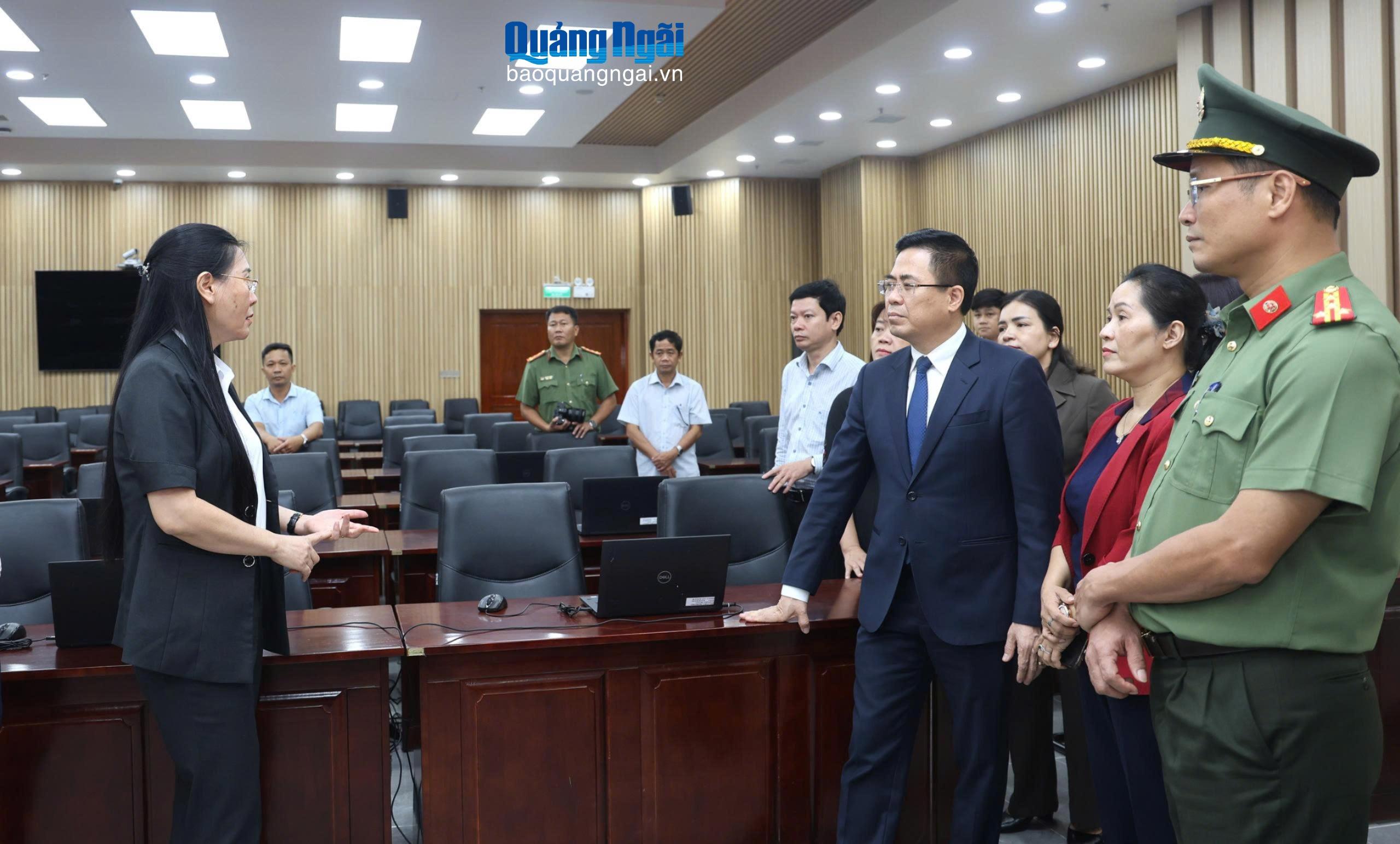 Lãnh đạo tỉnh kiểm tra Trung tâm Báo chí phục vụ Đại hội đại biểu Đảng bộ tỉnh lần thứ I, nhiệm kỳ 2025 - 2030. Ảnh: NGỌC ĐỨC.