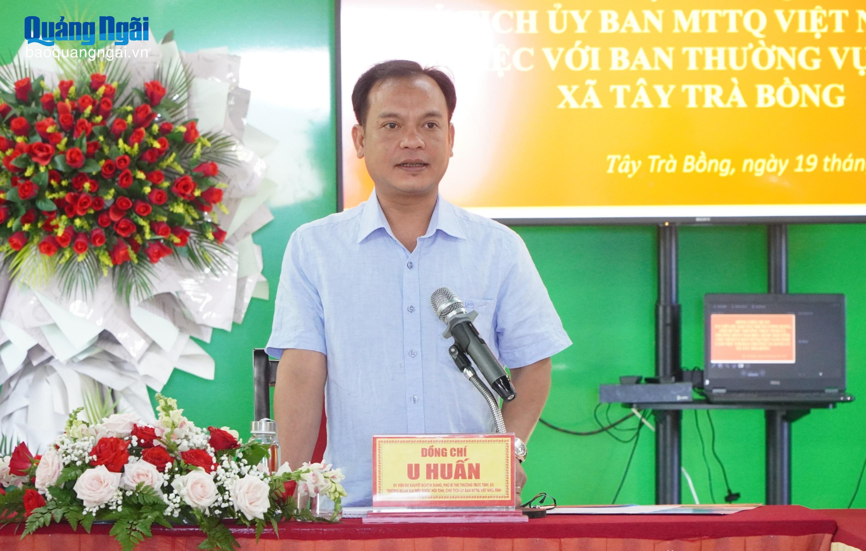Kết luận buổi làm việc, Ủy viên dự khuyết Trung ương Đảng, Phó Bí thư Thường trực Tỉnh ủy, Trưởng đoàn ĐBQH tỉnh, Chủ tịch Ủy ban MTTQ Việt Nam tỉnh U Huấn đánh giá cao tinh thần trách nhiệm và nỗ lực của Đảng ủy xã Tây Trà Bồng trong việc nhanh chóng kiện toàn tổ chức bộ máy, vận hành hiệu quả chính quyền địa phương sau khi thành lập mới.