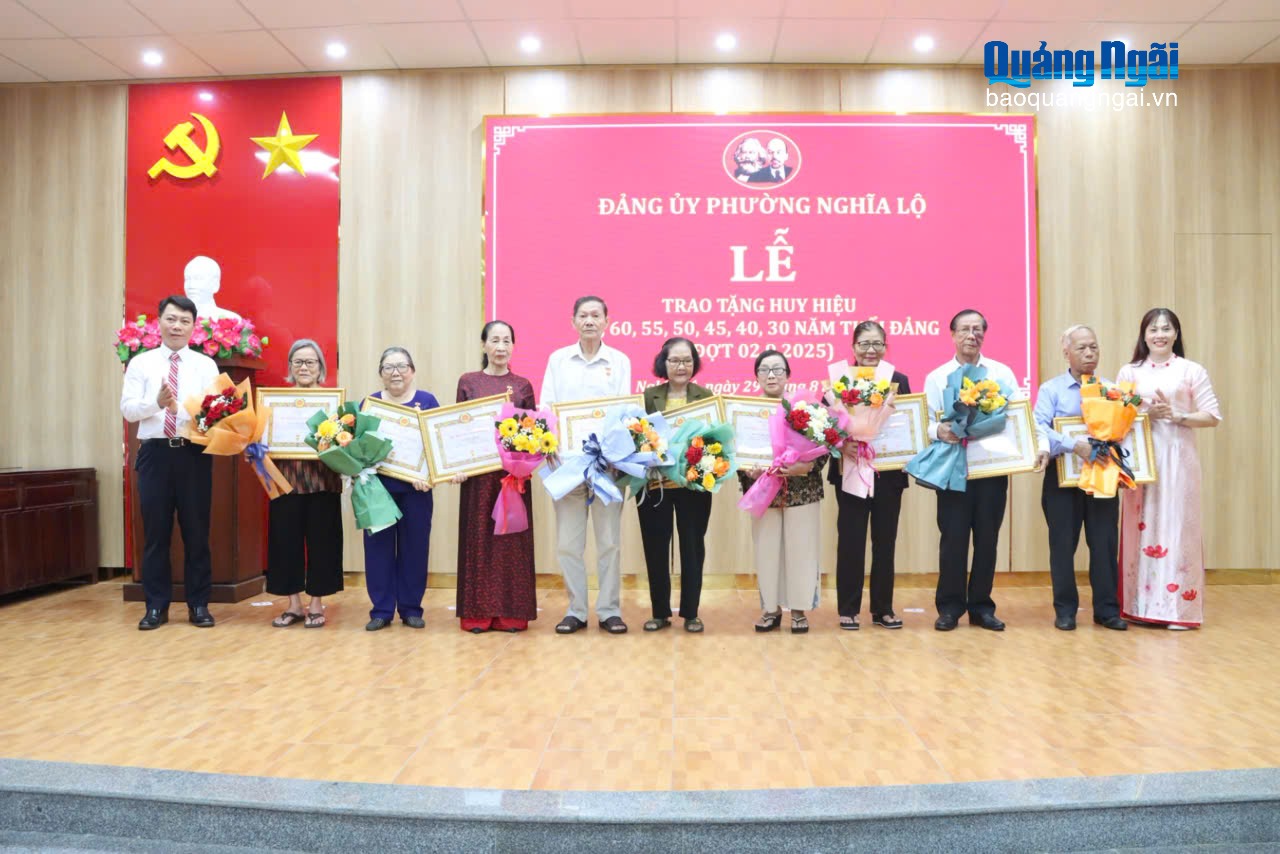 Đợt này, Đảng bộ phường Nghĩa Lộ có 109 đảng viên vinh dự được trao Huy hiệu từ 30 năm đến 65 năm tuổi Đảng.