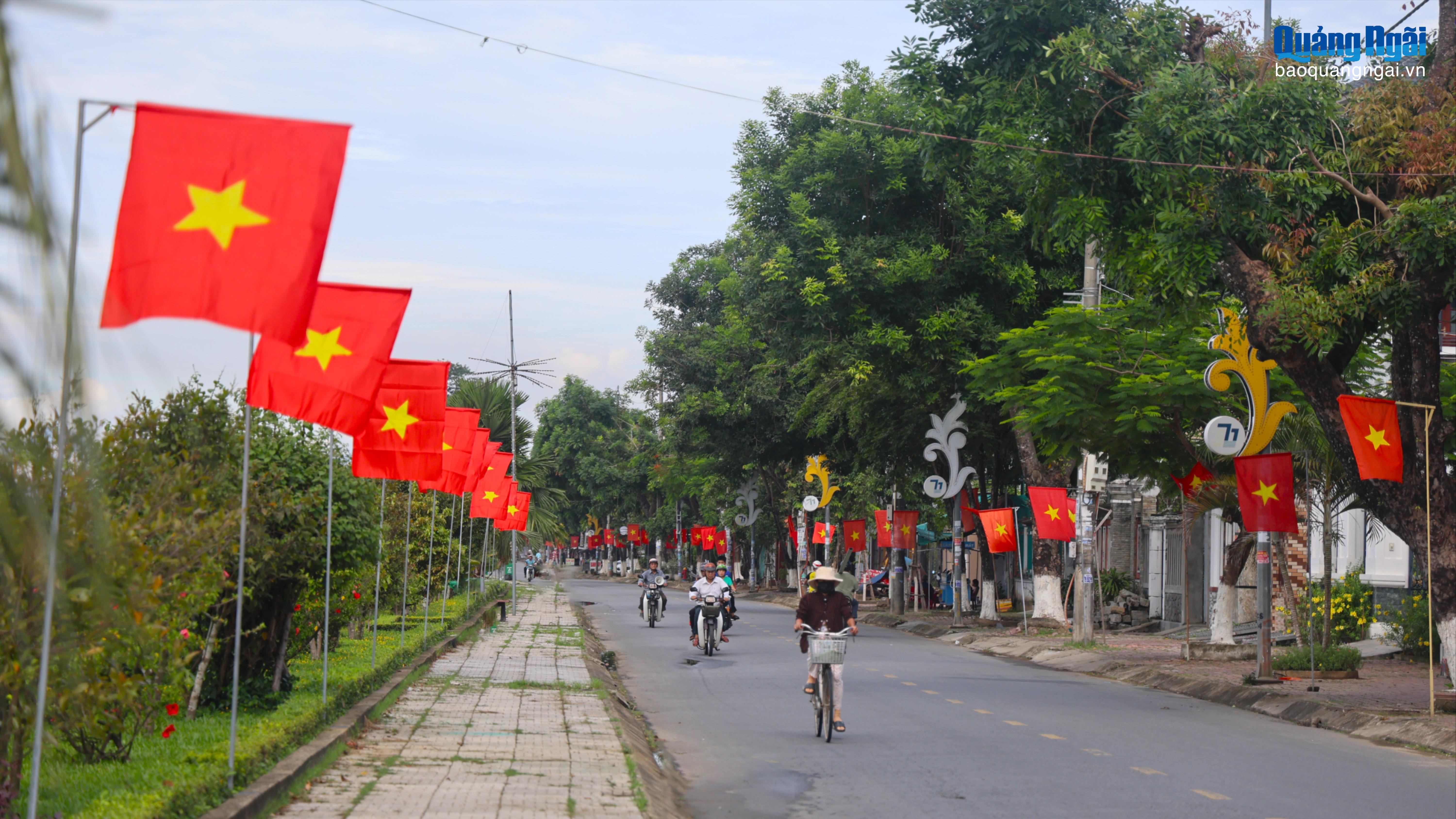 Những con đường ở Quảng Ngãi khoác lên mình sắc đỏ rực rỡ nhân dịp kỷ niệm 80 năm Ngày Cách mạng Tháng Tám và Quốc khánh 2/9.