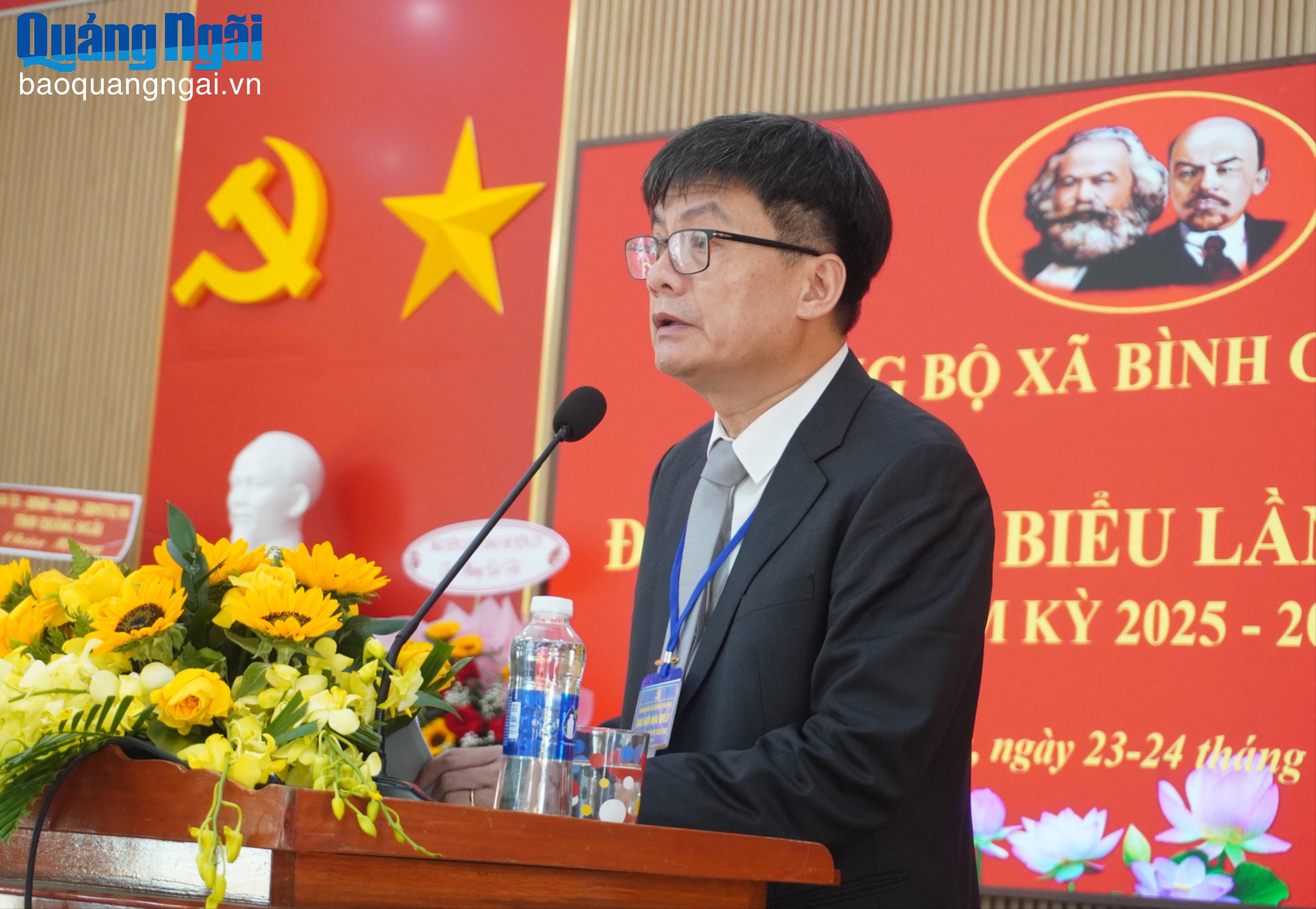 Phát biểu chỉ đạo tại đại hội, Phó chủ tịch HĐND tỉnh Nguyễn Thế Hải ghi nhận và biểu dương những thành quả mà Đảng bộ, chính quyền và nhân dân xã Bình Chương đã đạt được trong nhiệm kỳ qua. Đồng thời, đề nghị trong nhiệm kỳ 2025 - 2030, Đảng bộ xã Bình Chương tiếp tục phát huy tinh thần đoàn kết, thống nhất ý chí và hành động trong Đảng bộ, tạo sự đồng thuận cao trong xã hội. Tập trung thực hiện các giải pháp phát triển kinh tế, xã hội, nâng cao đời sống nhân dân. Khuyến khích các mô hình sản xuất ứng dụng công nghệ cao, sản phẩm OCOP, tiểu thủ công nghiệp và dịch vụ nông thôn. Tạo thuận lợi để kinh tế tư nhân phát triển mạnh mẽ.