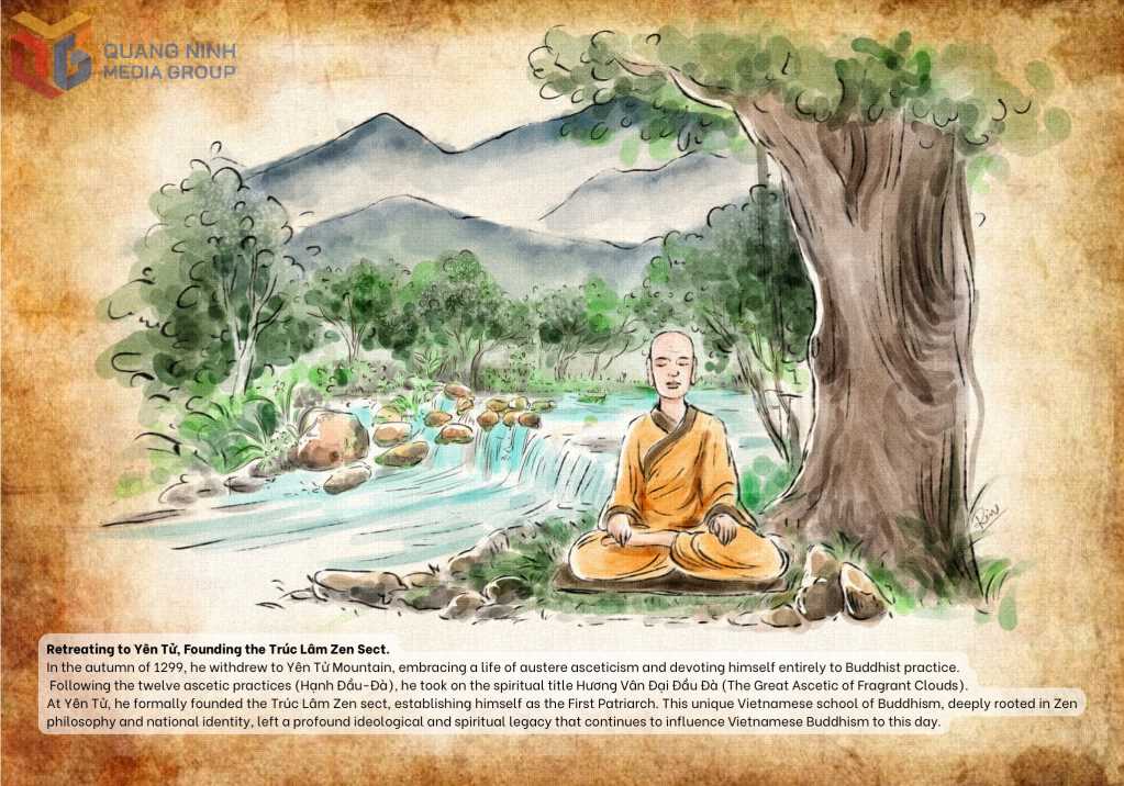 Một bức tranh vẽ Phật hoàng Trần Nhân Tông trên Yên Tử.