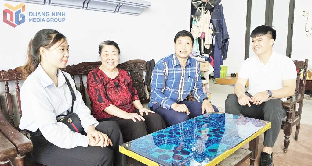 Bí thư Chi bộ, Trưởng khu phố Liên Hòa 1 Nguyễn Hoàng Sơn (ngoài cùng, bên phải) cùng cán bộ khu phố đến từng hộ dân để tuyên truyền, vận động thực hiện các nhiệm vụ chung.