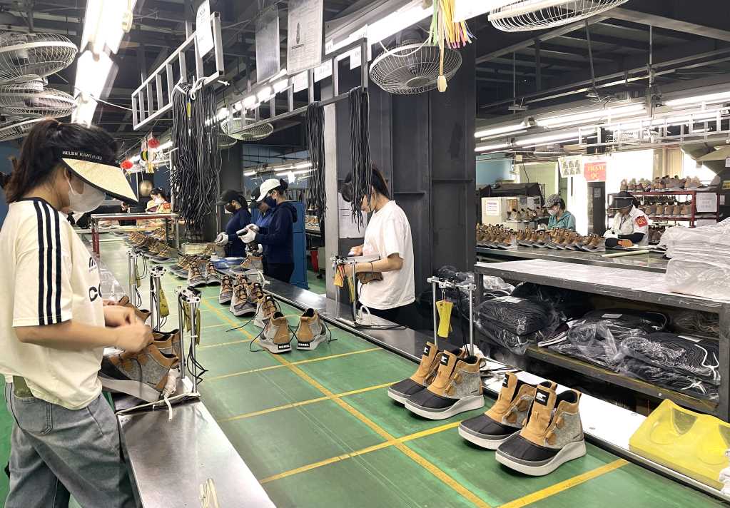 Sản xuất giày tại Công ty TNHH giày dép Bách Năng Quảng Ninh (phường Mạo Khê).