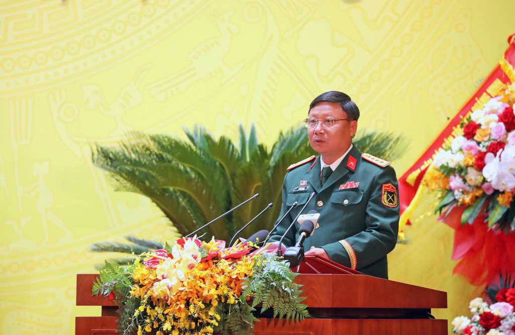 Đồng chí Lê Trọng Hoà, Chỉ huy trưởng Bộ CHQS tỉnh, tham luận về “Xây dựng khu vực phòng thủ tỉnh vững chắc, gắn phát triển kinh tế - xã hội, củng cố quốc phòng, giữ vững chủ quyền, an ninh biên giới - biển đảo Quảng Ninh trong tình hình mới”.
