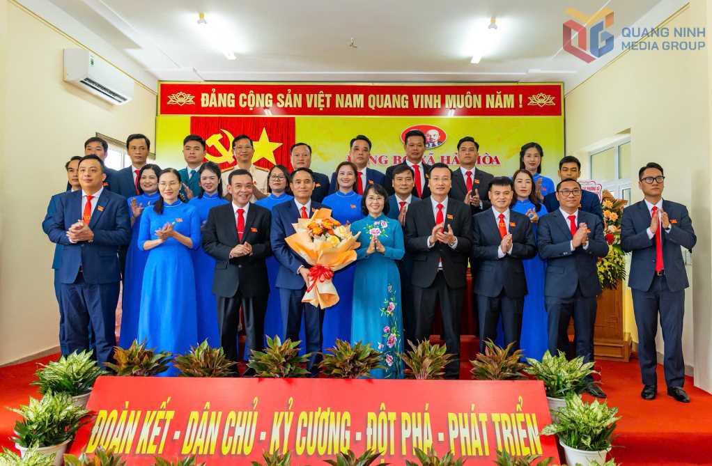 Đồng chí Trịnh Thị Minh Thanh, Phó Bí thư Thường trực Tỉnh ủy, Chủ tịch HĐND tỉnh, tặng hoa chúc mừng Ban Chấp hành Đảng bộ xã Hải Hòa lần thứ I, nhiệm kỳ 2025-2030.