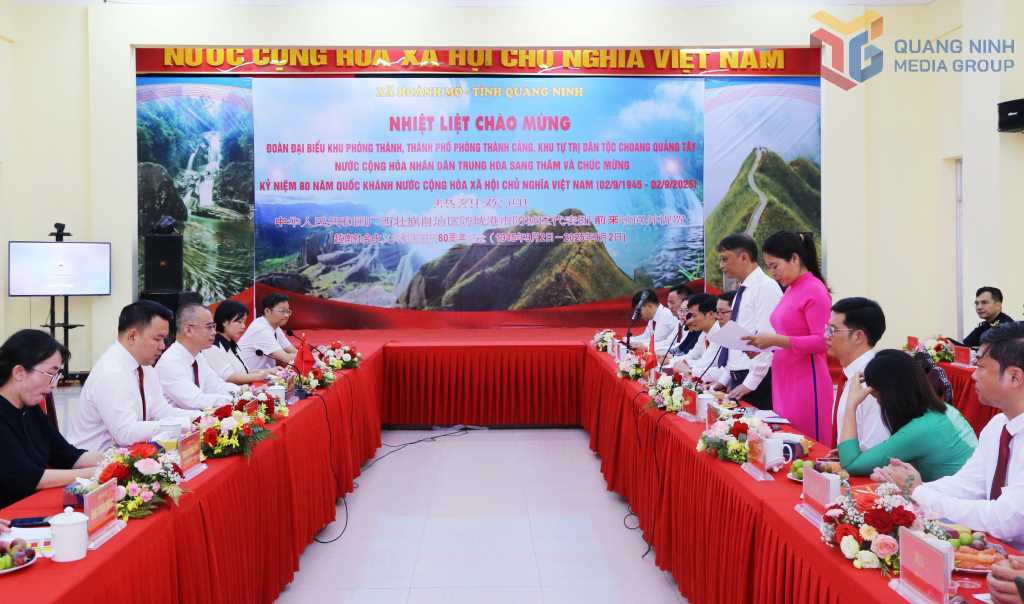Nhân dịp kỷ niệm 80 năm Quốc khánh nước Cộng hòa XHCN Việt Nam (2/9/1945-2/9/2025), sáng 2/9, Đoàn đại biểu khu Phòng Thành, TP Phòng Thành Cảng, Khu tự trị dân tộc Choang Quảng Tây (Trung Quốc) đã sang thăm và chúc mừng xã Hoành Mô (Quảng Ninh, Việt Nam).