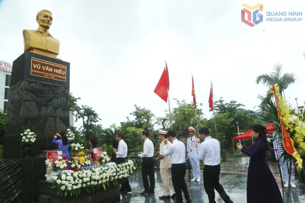 Đặt vòng hoa, dâng hương tại Tượng đài đồng chí Vũ Văn Hiếu, Bí thư Đặc khu ủy đầu tiên Khu mỏ Quảng Ninh, Đoàn đại biểu tỏ lòng thành kính trước người anh hùng đã hiến dâng trọn đời mình cho sự nghiệp cách mạng của Đảng và dân tộc.