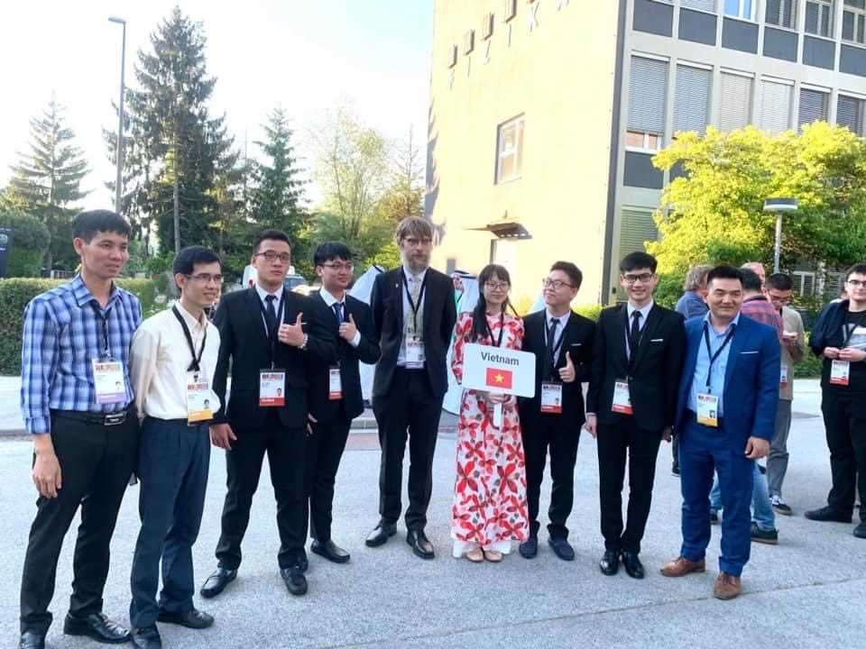 Lê Thùy Mai Anh (Trường THPT Chuyên Hạ Long) đoạt Huy chương Đồng tại Kỳ thi Olympic Vật lý châu Âu năm 2022 (thứ 4 từ phải sang).