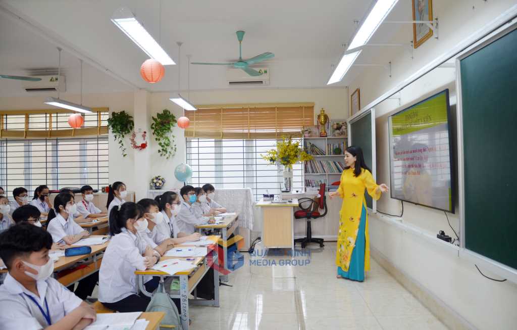 Một giờ học của cô và trò Trường THCS Trọng Điểm (học sinh đeo khẩu trang phòng chống dịch Covid-19, năm học 2020-2021).