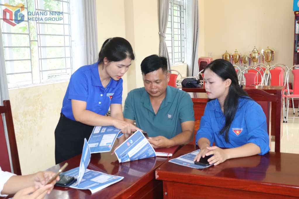 Đoàn Thanh niên xã Lục Hồn hướng dẫn người dân sử dụng công nghệ.