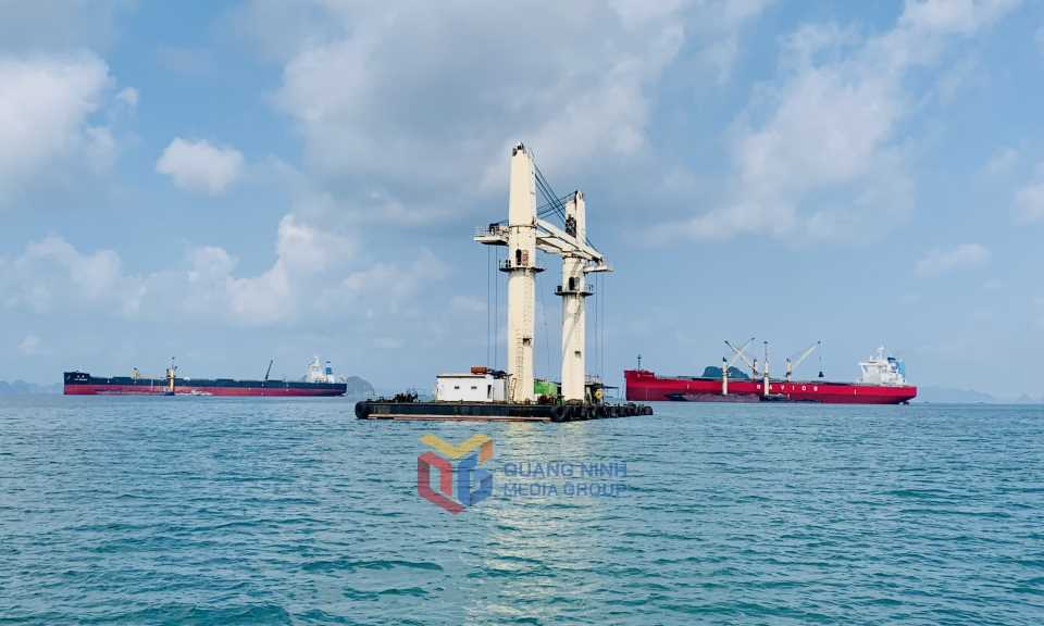 Hoạt động chuyển tải, bốc xếp hàng hóa tại khu vực cảng Con Ong - Hòn Nét.