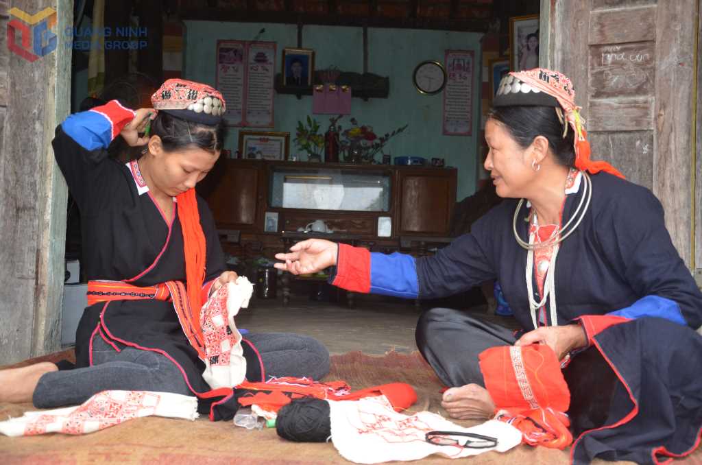 Nếu dân ca, dân vũ thể hiện hồn cốt văn hóa ở phương diện tinh thần thì trang phục, hoa văn, nghề thủ công lại phản ánh chiều sâu bản sắc qua yếu tố vật chất. Giới trẻ Quảng Ninh ngày càng tích cực tham gia hoạt động tái hiện, sáng tạo các sản phẩm thủ công truyền thống của dân tộc mình. Tại Trường TH&THCS Tân Dân (xã Quảng La), học sinh đã tham gia lớp học thêu hoa văn truyền thống dân tộc Dao dưới sự hướng dẫn của giáo viên và nghệ nhân địa phương. Từng đường thêu, họa tiết trên khăn, mũ, yếm, áo được các em thực hiện không chỉ bằng đôi tay khéo léo mà còn bằng niềm tự hào về dân tộc. Khi hiểu được ý nghĩa của từng họa tiết là biểu tượng của núi rừng, trời đất, các em càng ý thức sâu sắc hơn trách nhiệm giữ gìn văn hóa và môi trường sống xung quanh.